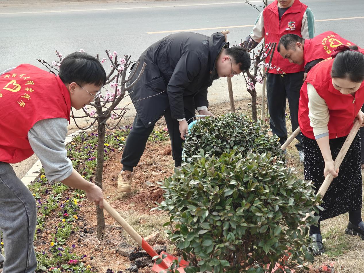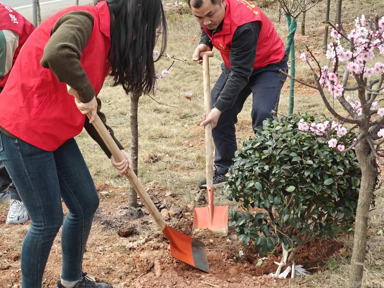 志愿者们一起挥锹铲土、培土围堰、提水浇灌,争当一"渌"添彩行动的参与者、建设者、推动者,用"志愿红"点亮"生态绿",以实际行动助力魅力淦田的生态建设。经过一下午的辛勤劳动,数株红枫、四季茶梅球、欧月季等在机关大院"安家落户",装扮了院子前坪、院内角落和办公室阳台。
