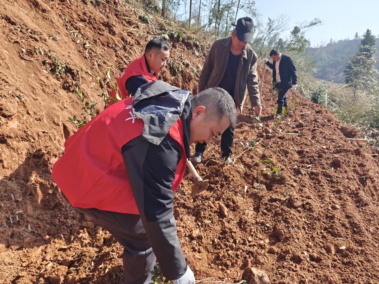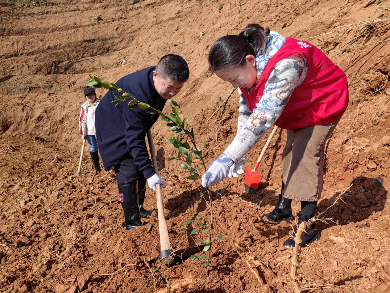 阳光明媚,春意盎然,植树现场一片繁忙。在镇党委书记白繁星、镇人大主席叶舜尧的带领下,淦田镇党员干部们拿着锄头、铁锹等工具,或两人一组,或三五成群,挥锄铲土、分苗定植、扶苗填坑,协同配合,干劲十足,呈现出一派热火朝天的劳动景象。在一片欢声笑语中,一株株油茶树迎风而立,在春日的映照下展现出勃勃生机。