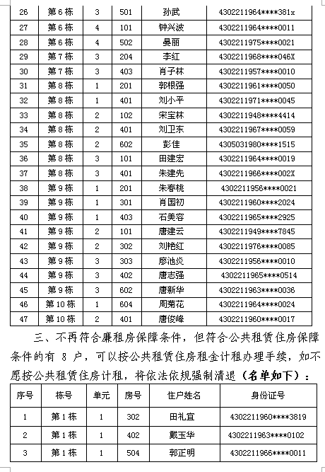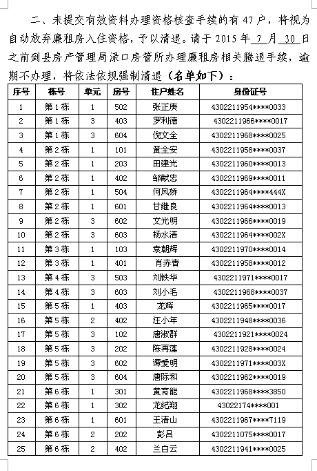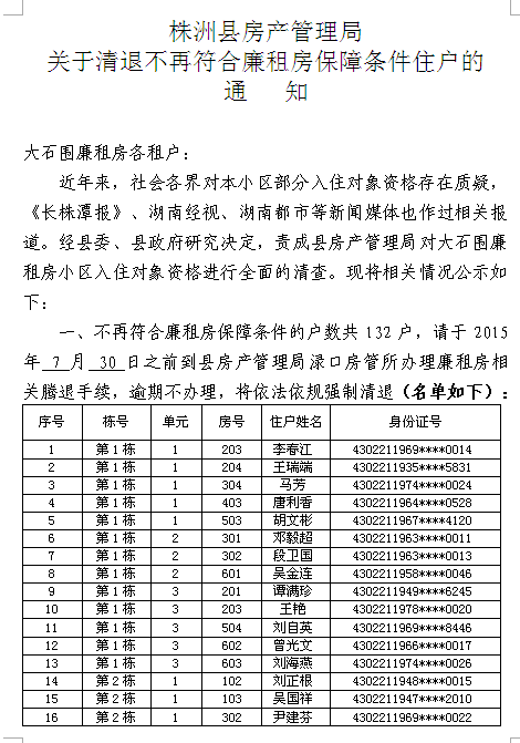 株洲县房产管理局关于清退不再符合廉租房保障条件住户的通知