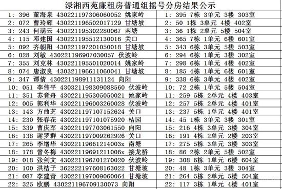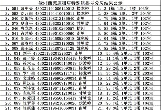 株洲县2014年渌湘西苑廉租房公开摇号分配结果公示