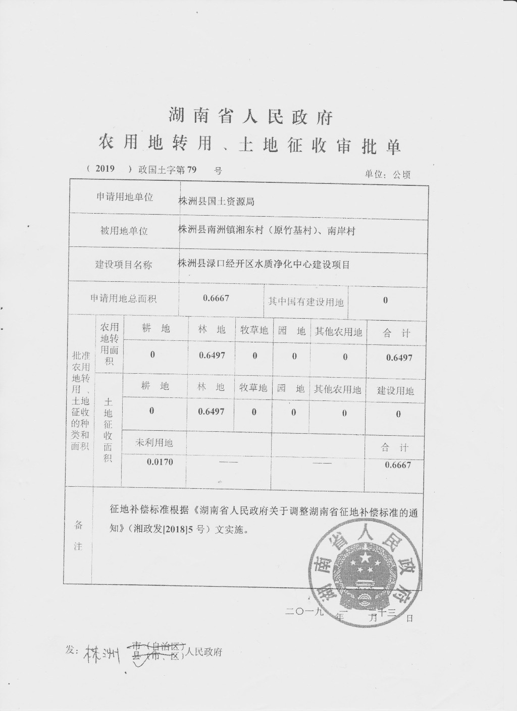 株洲县渌口经开区水质净化中心建设项目农用地转用、土地征收审批单