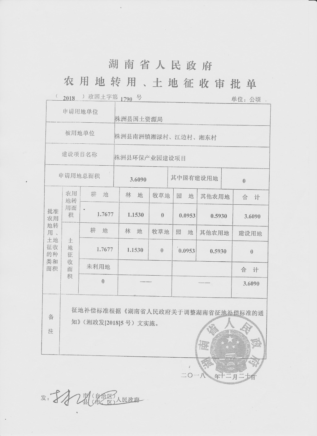 株洲县环保产业园建设项目农用地转用、土地征收审批单