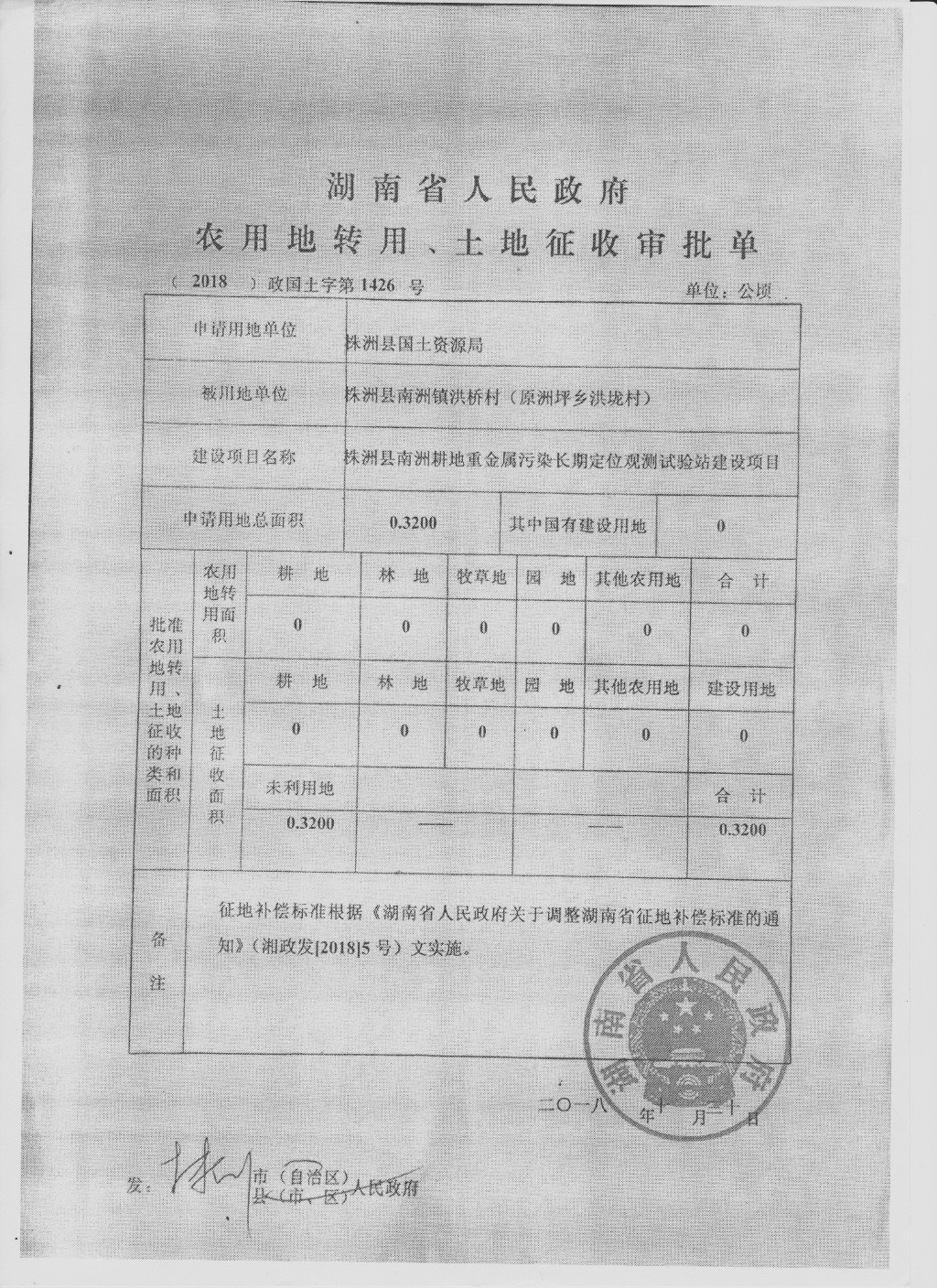 株洲县南洲耕地重金属污染长期定位观测试验站建设项目农用地转用、土地征收审批单