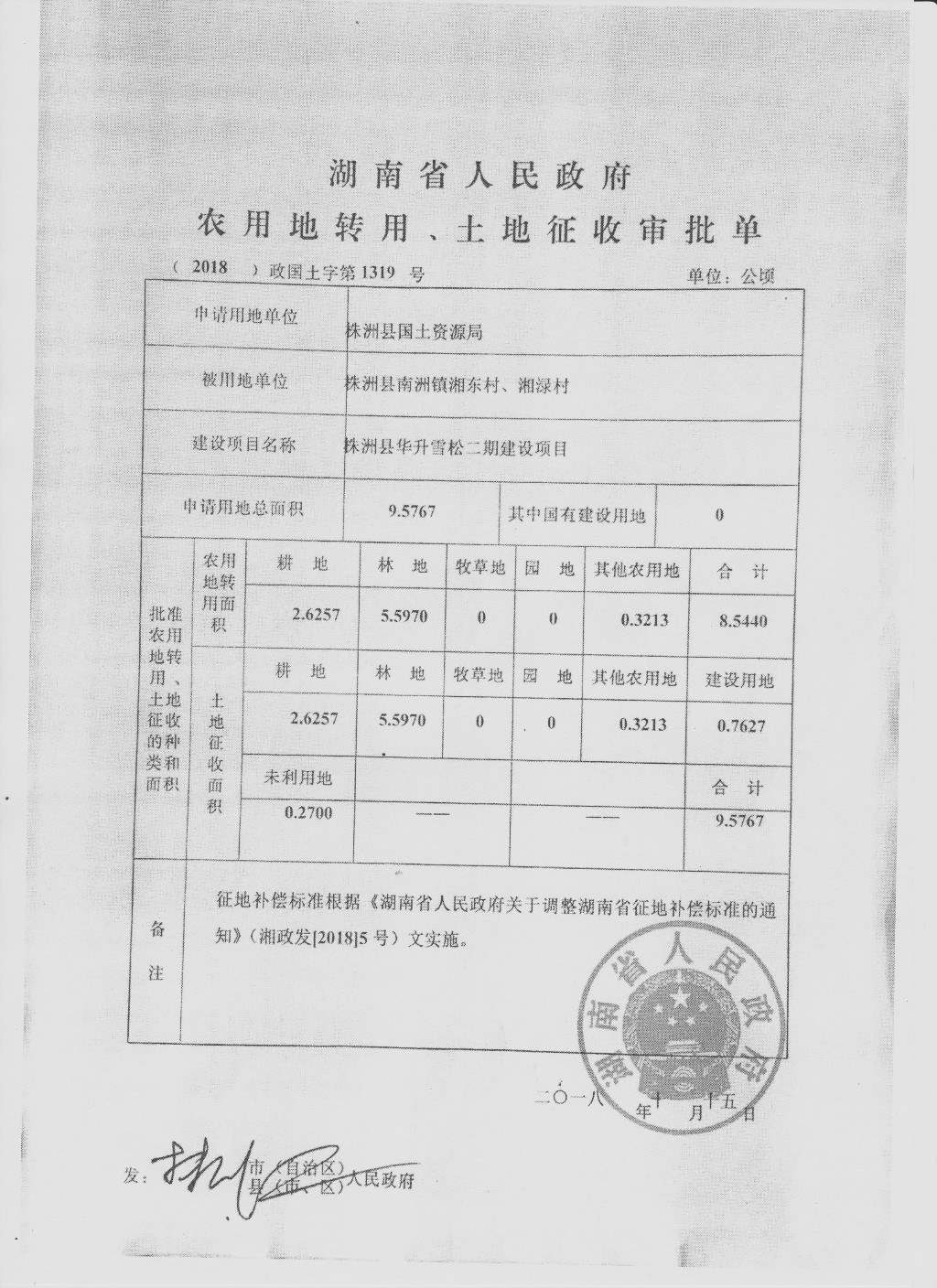 株洲县华升雪松二期建设项目农用地转用、土地征收审批单
