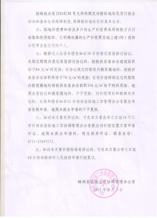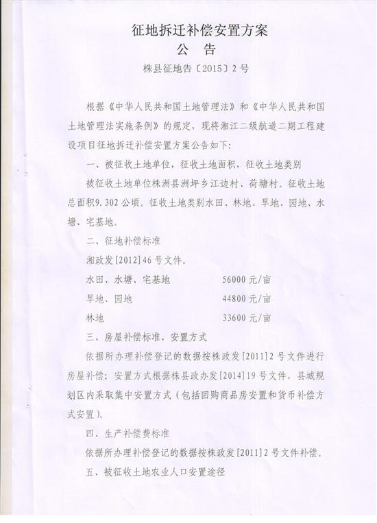 株县征地告(2015)2号株洲县江边村、荷塘村湘江二级航道二期攻城建设项目征地拆迁补偿安置方案公告