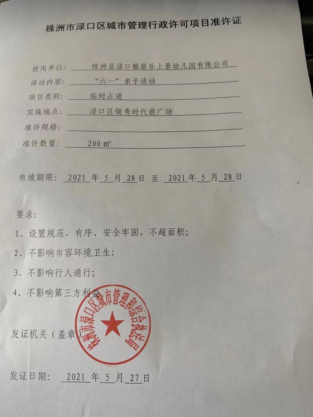 株洲市渌口区城市管理和综合执法局行政许可项目准许证