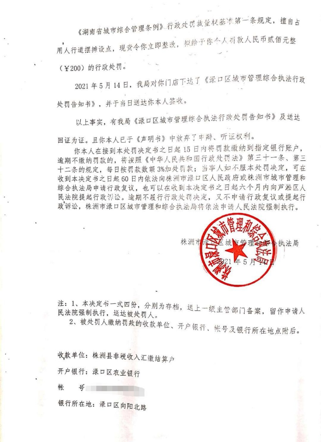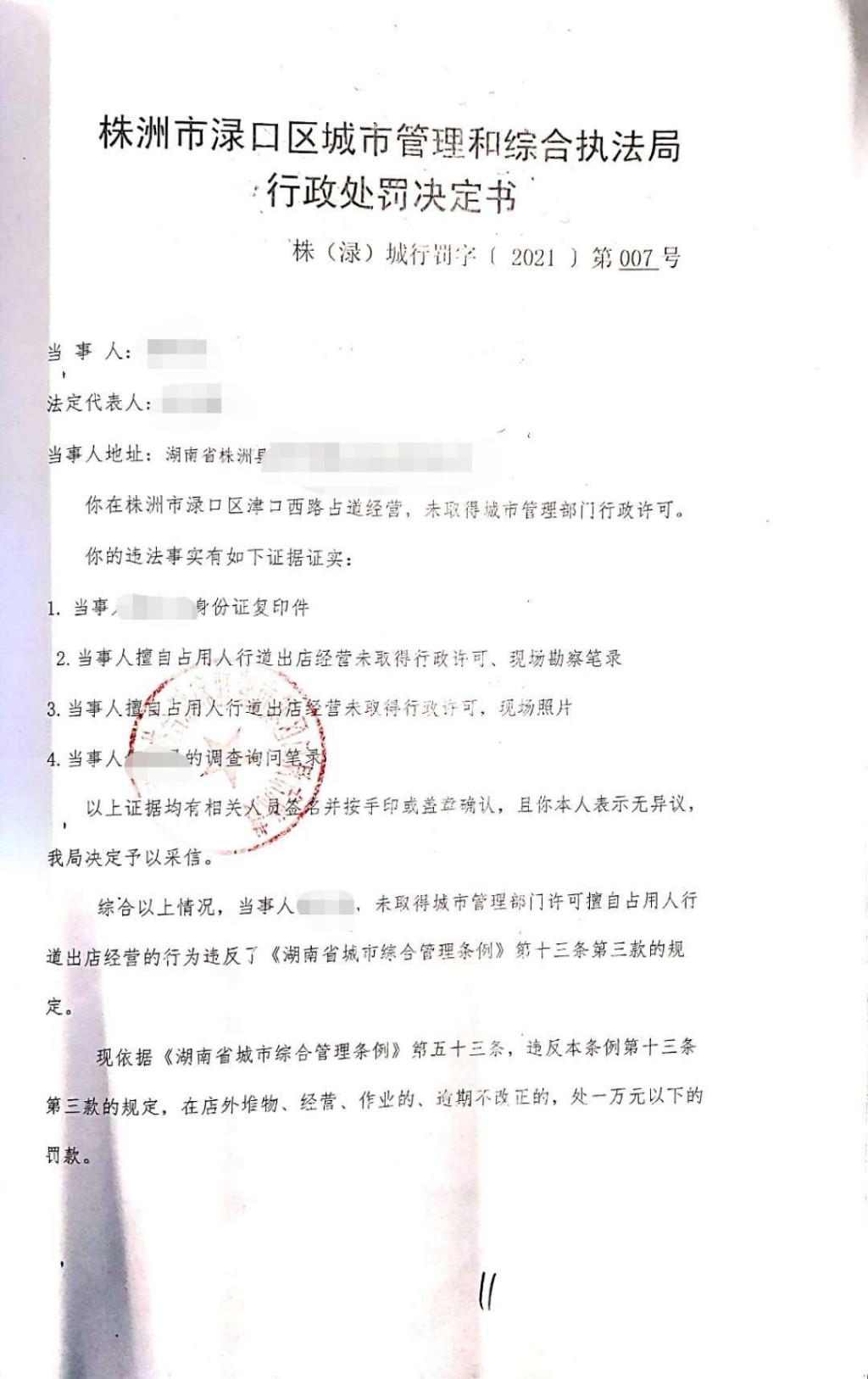 株洲市渌口区城市管理和综合执法局行政处罚决定书株(渌)城行罚字〔2021〕第007号