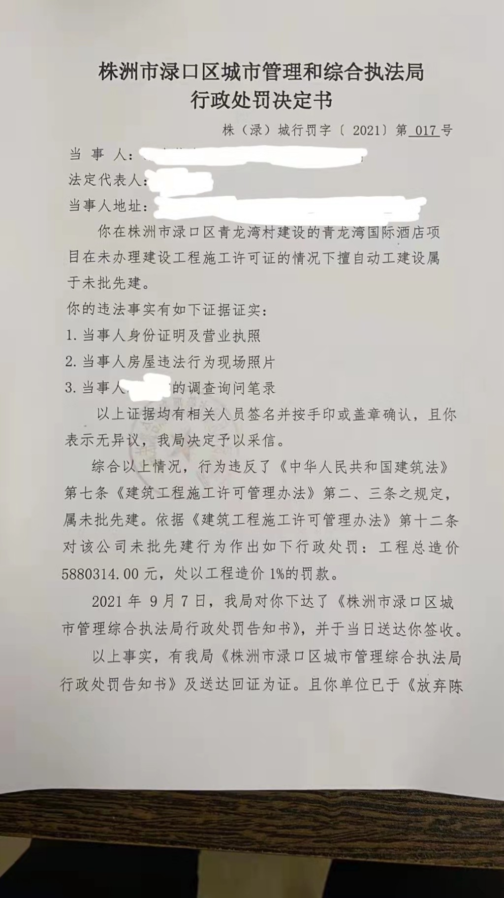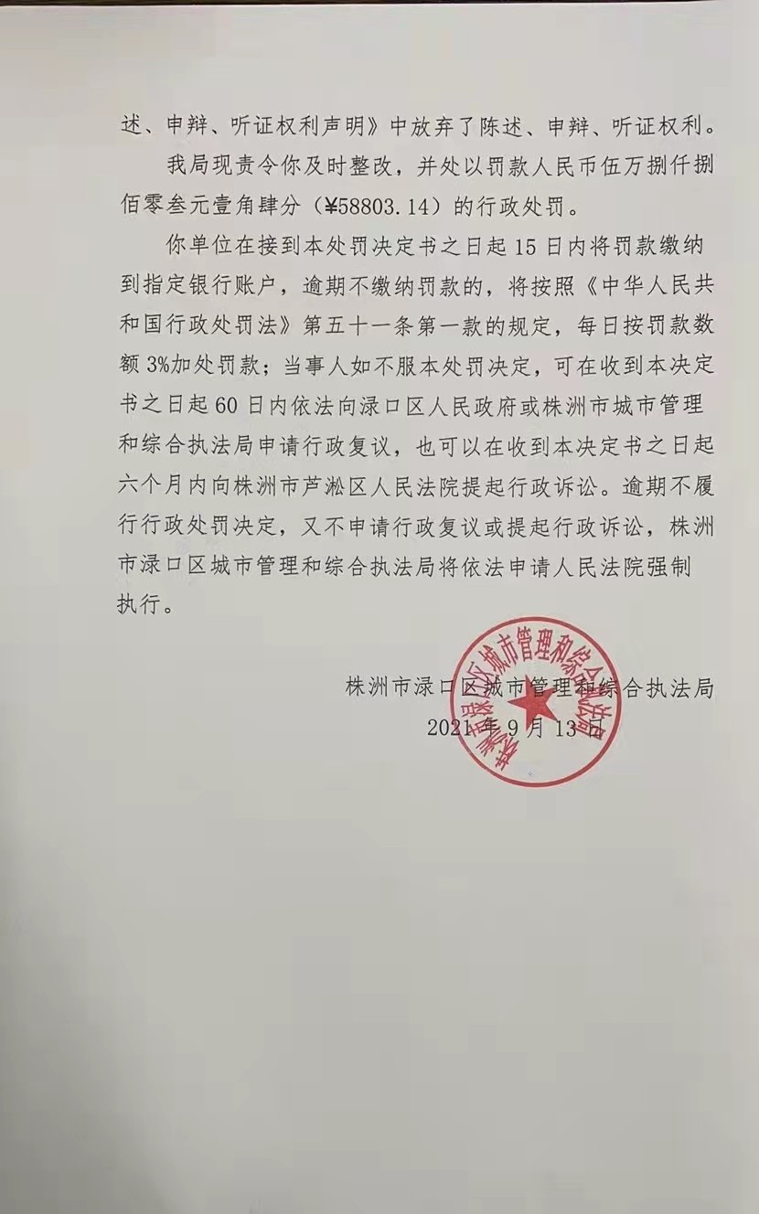 株洲市渌口区城市管理和综合执法局行政处罚决定书株(渌)城行罚字〔2021〕第017号