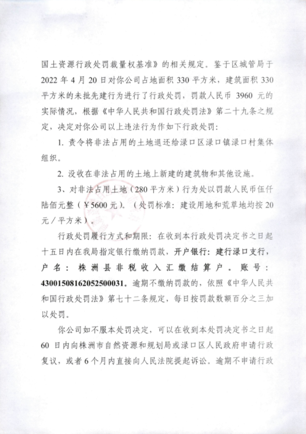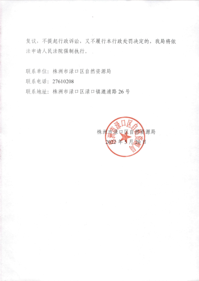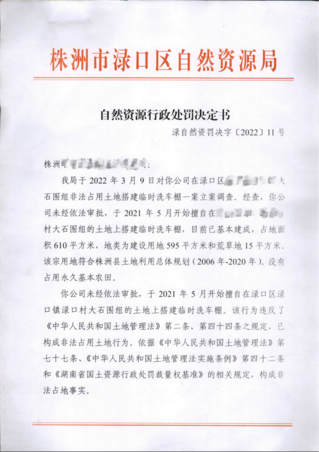 渌自然资源罚决字(2022)11号