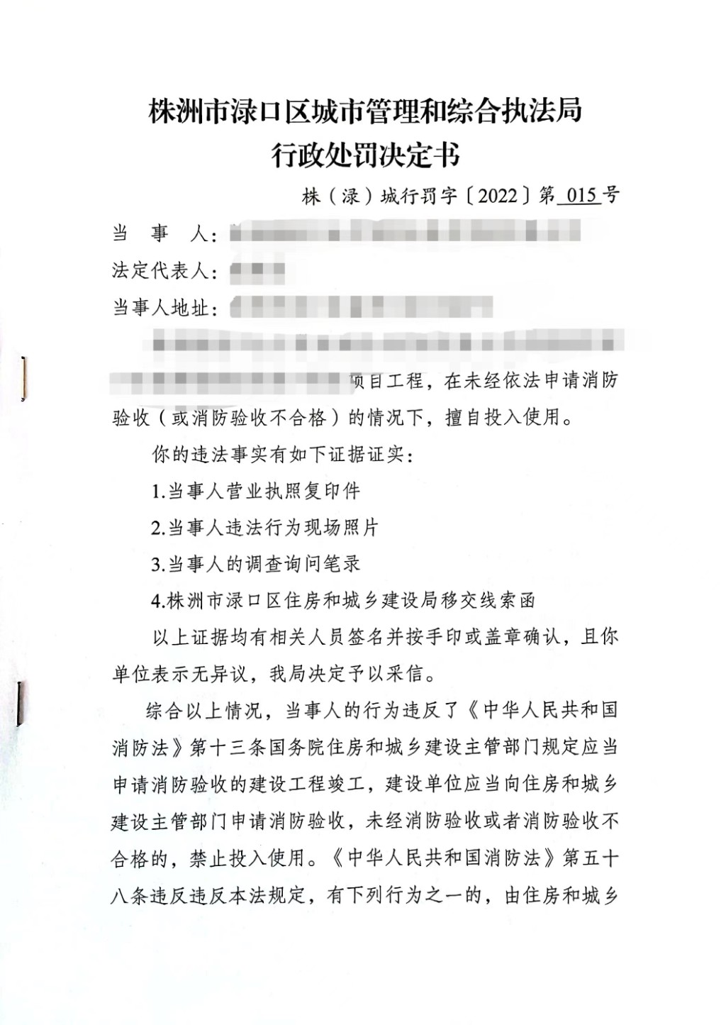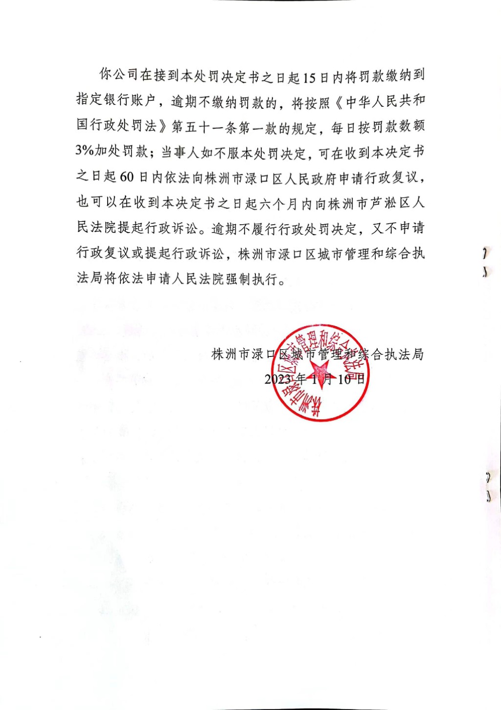 株洲市渌口区城市管理和综合执法局行政处罚决定书 株(渌)城行罚字〔 2022〕第015号