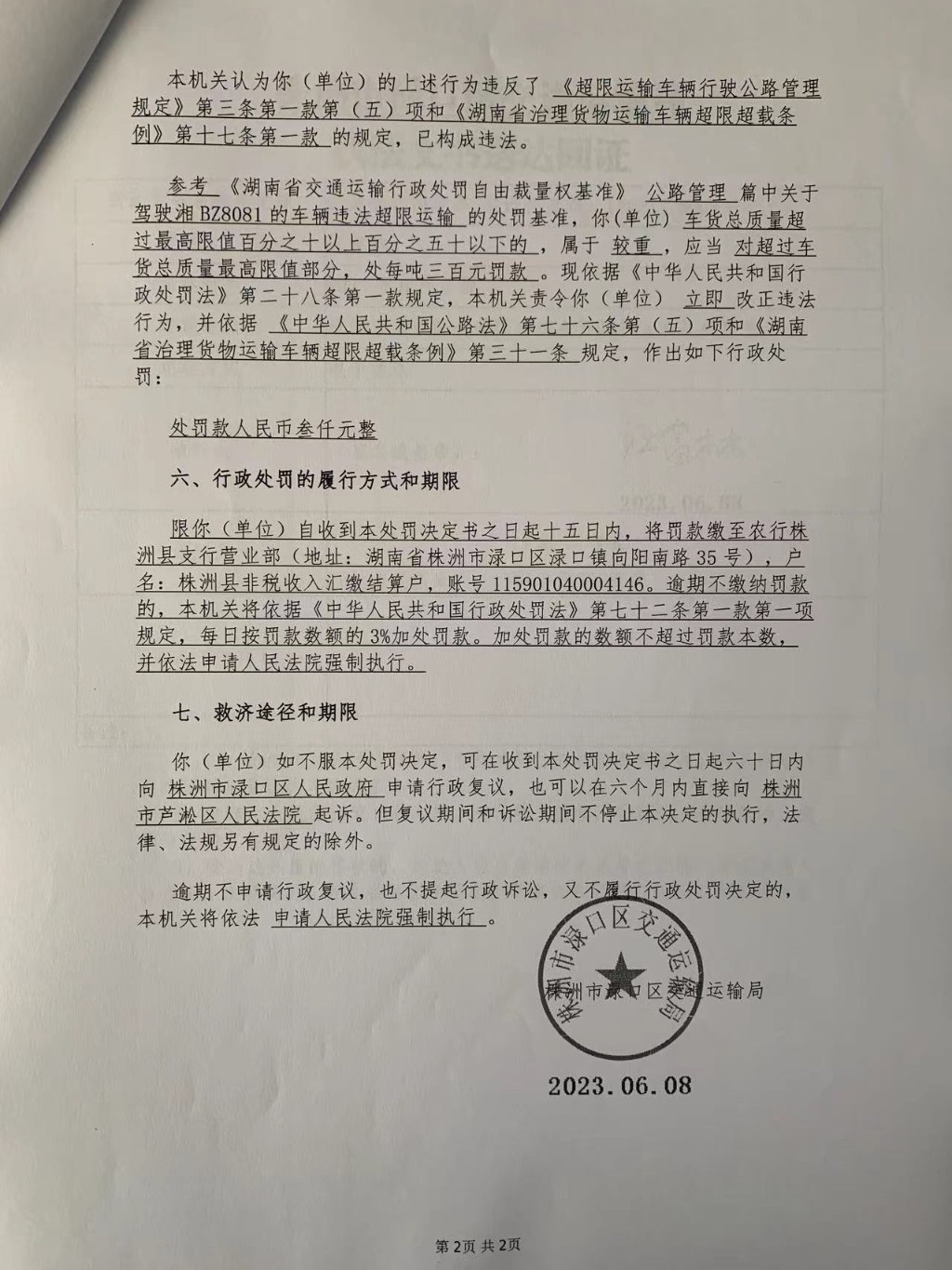 株洲市渌口区交通运输局行政处罚决定书株渌交处罚决定〔2023〕5008号