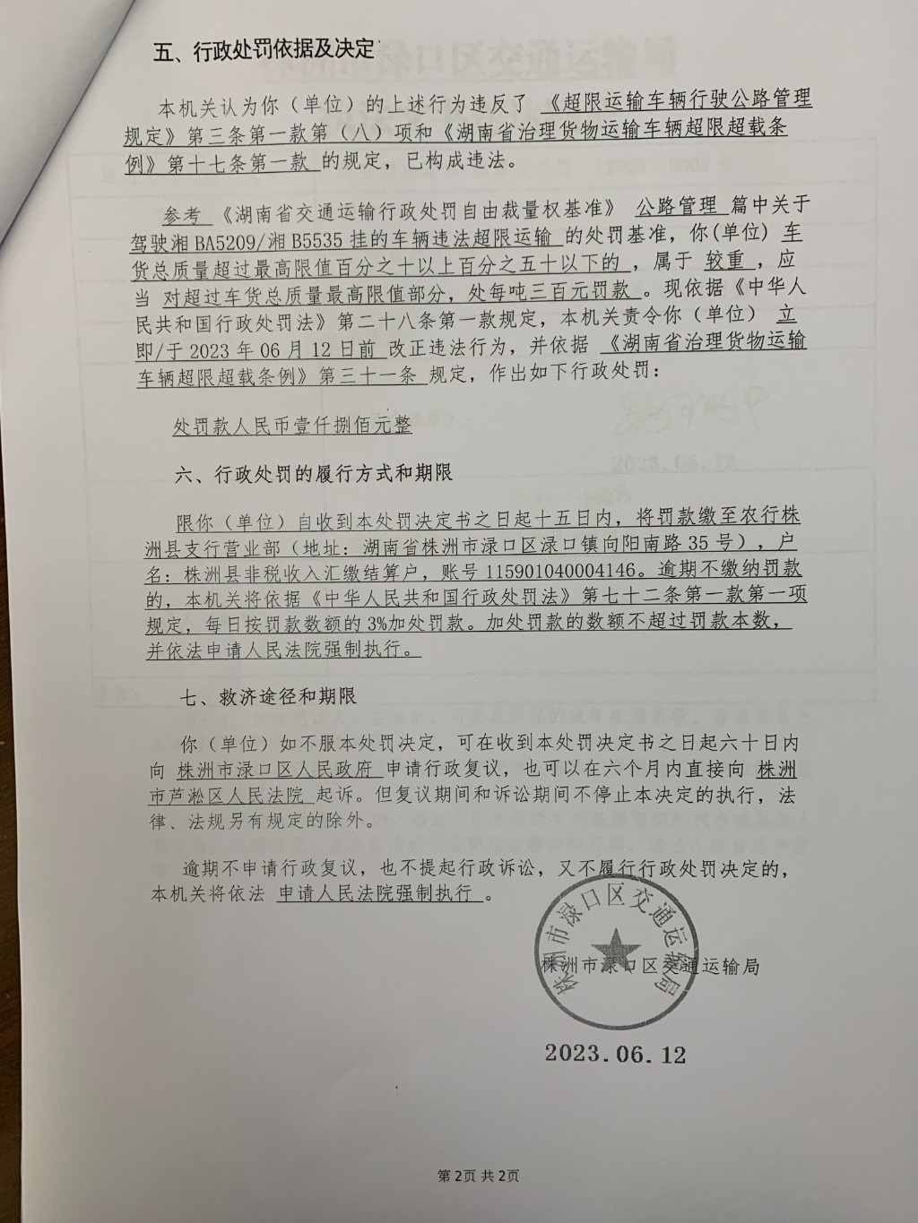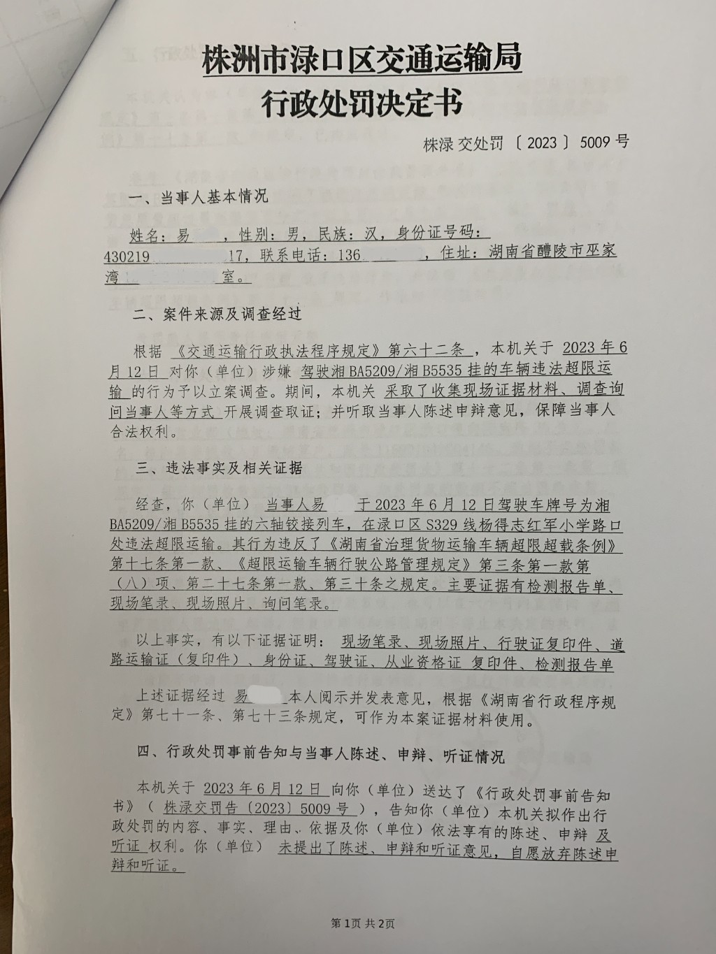 株洲市渌口区交通运输局行政处罚决定书株渌交处罚〔2023〕5009号