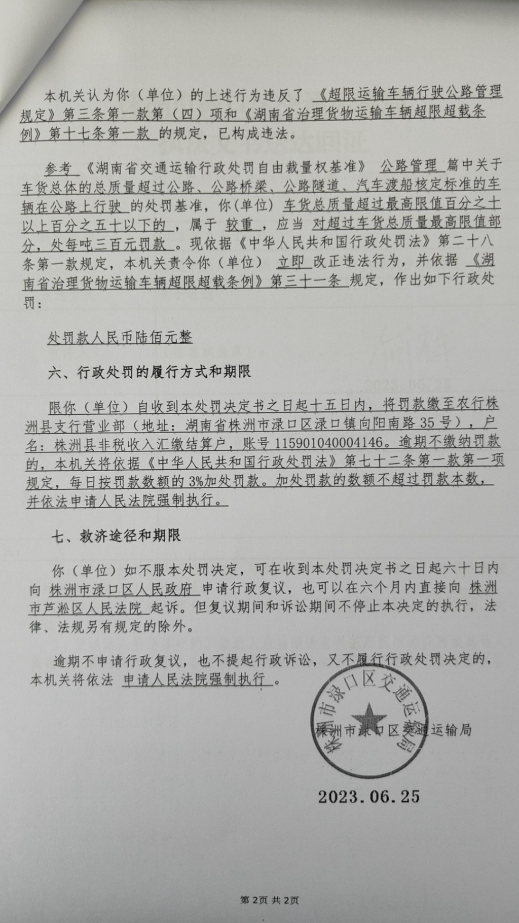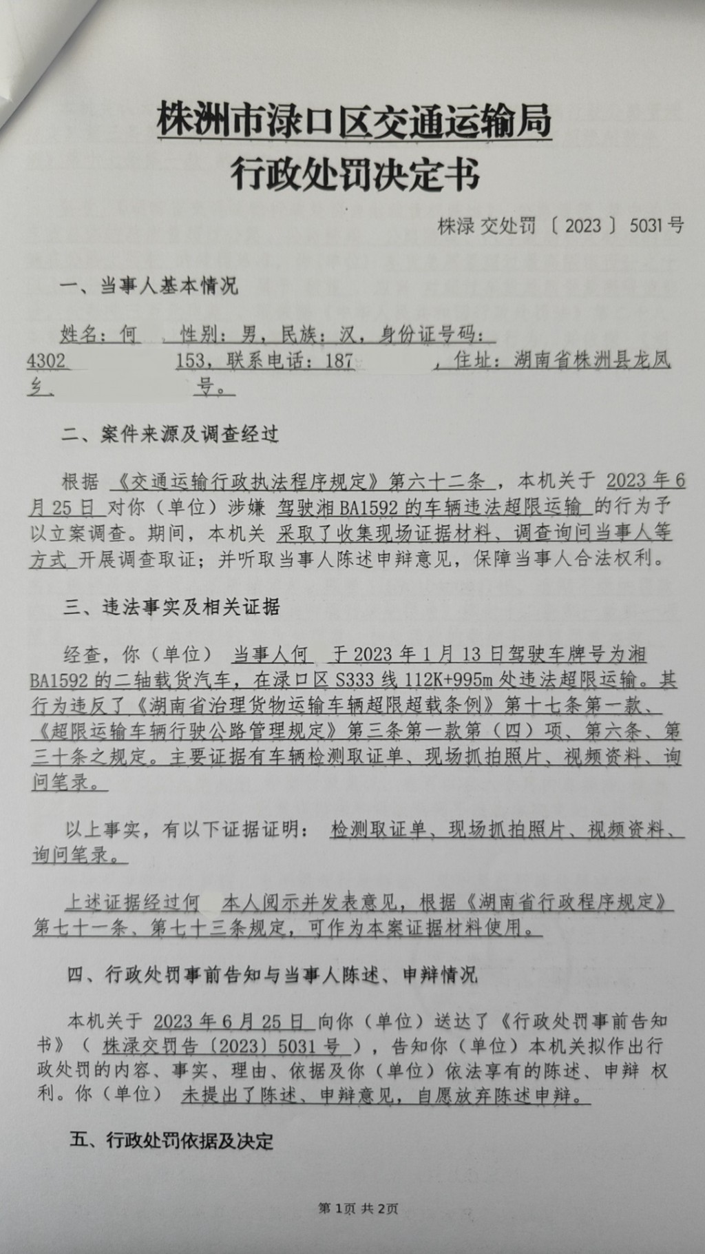 株洲市渌口区交通运输局行政处罚决定书株渌交处罚〔2023〕5031号