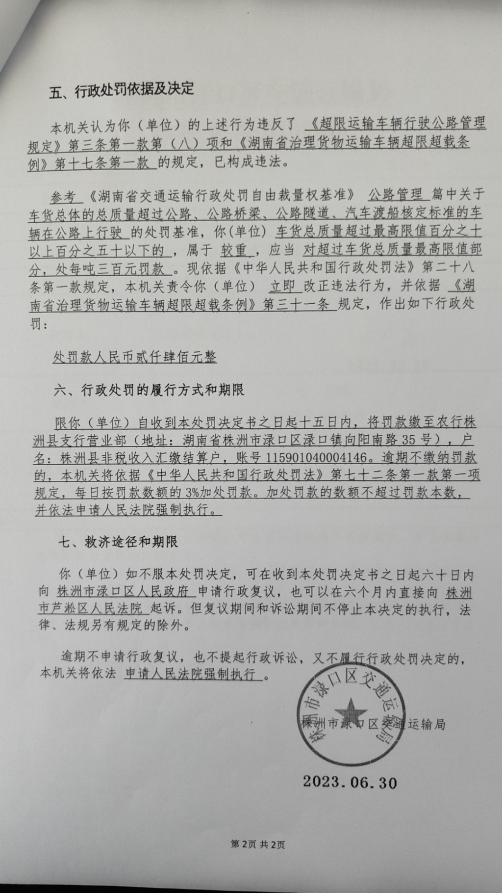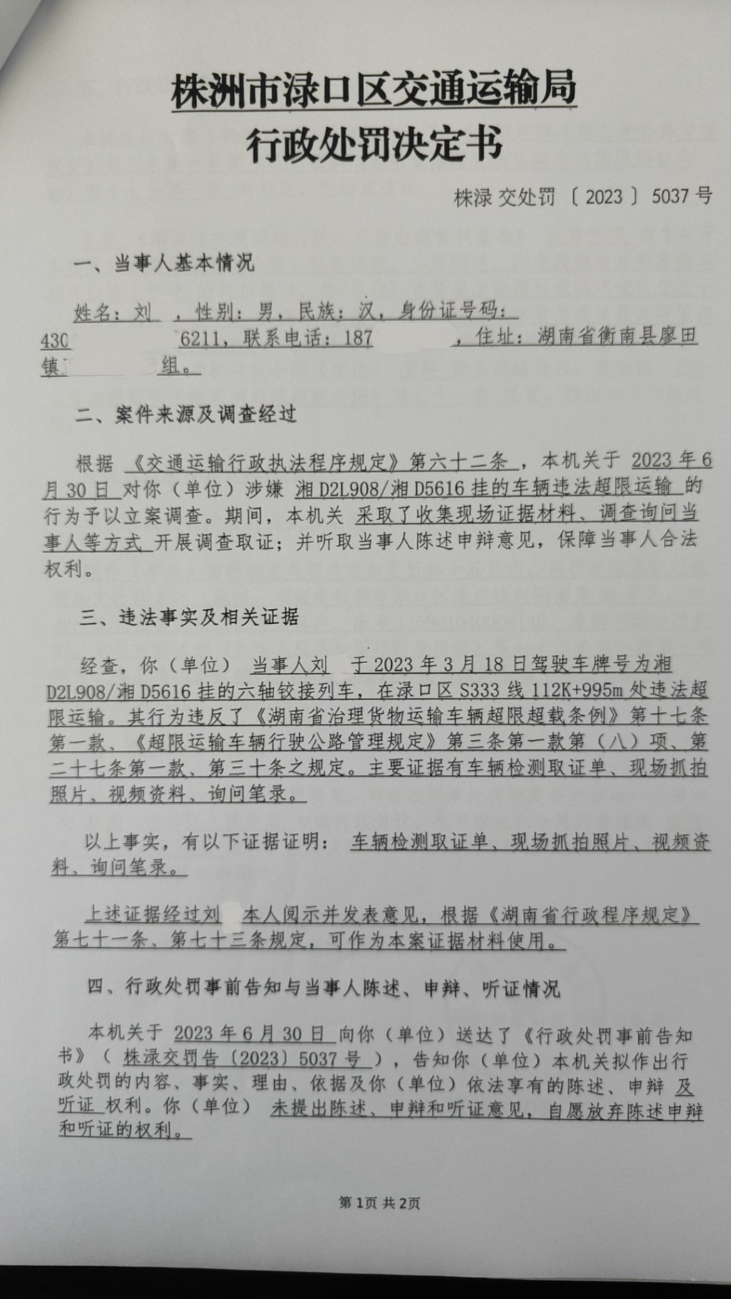 株洲市渌口区交通运输局行政处罚决定书株渌交处罚〔2023〕5037号
