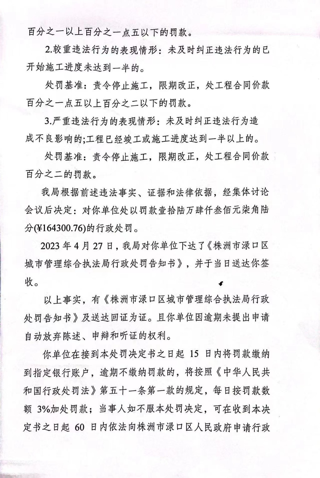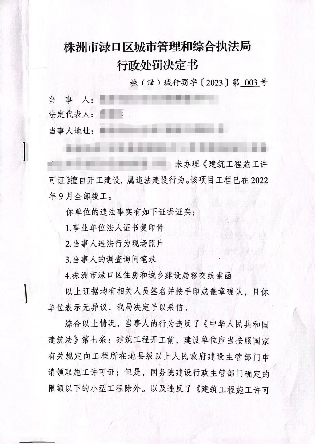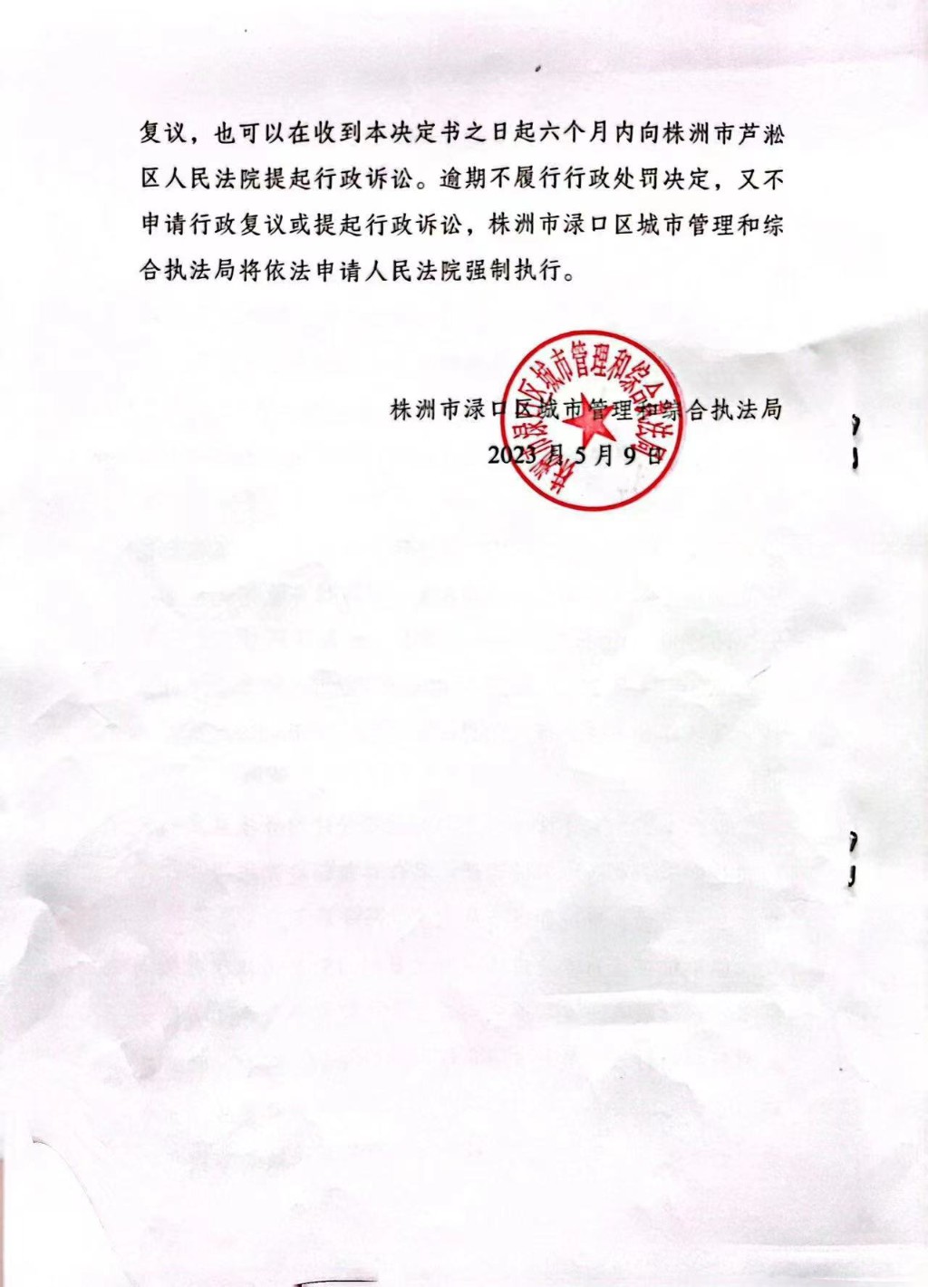 株洲市渌口区城市管理和综合执法局 行政处罚决定书 株(渌)城行罚字〔2023〕第 003号