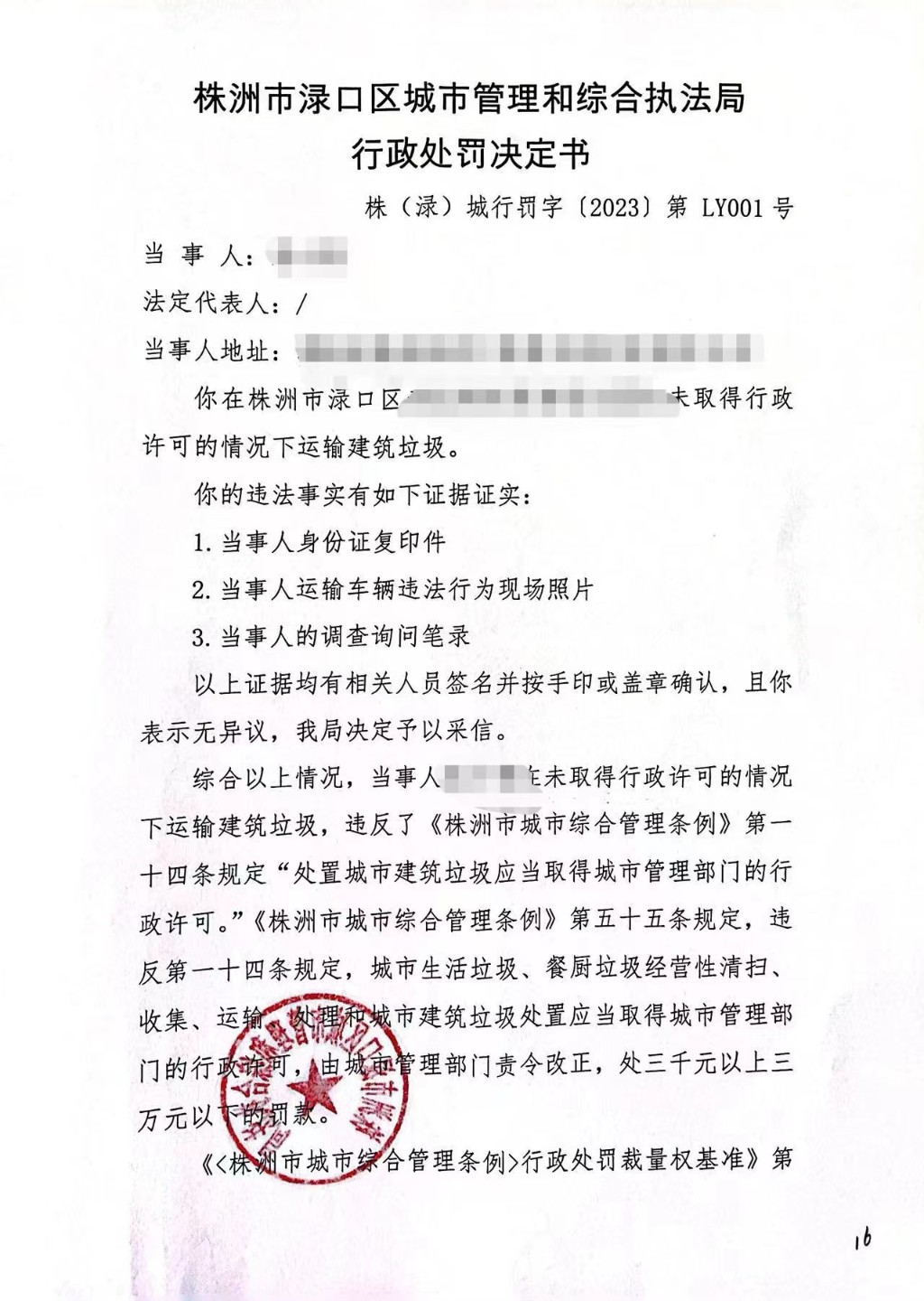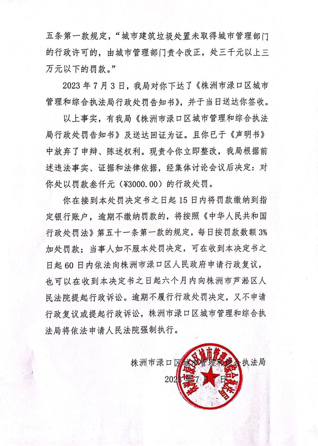 株洲市渌口区城市管理和综合执法局 行政处罚决定书 株(渌)城行罚字〔2023〕第 LY001号