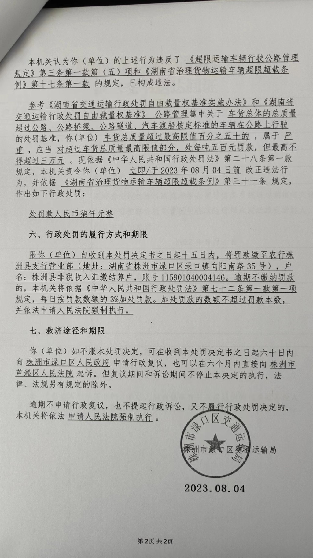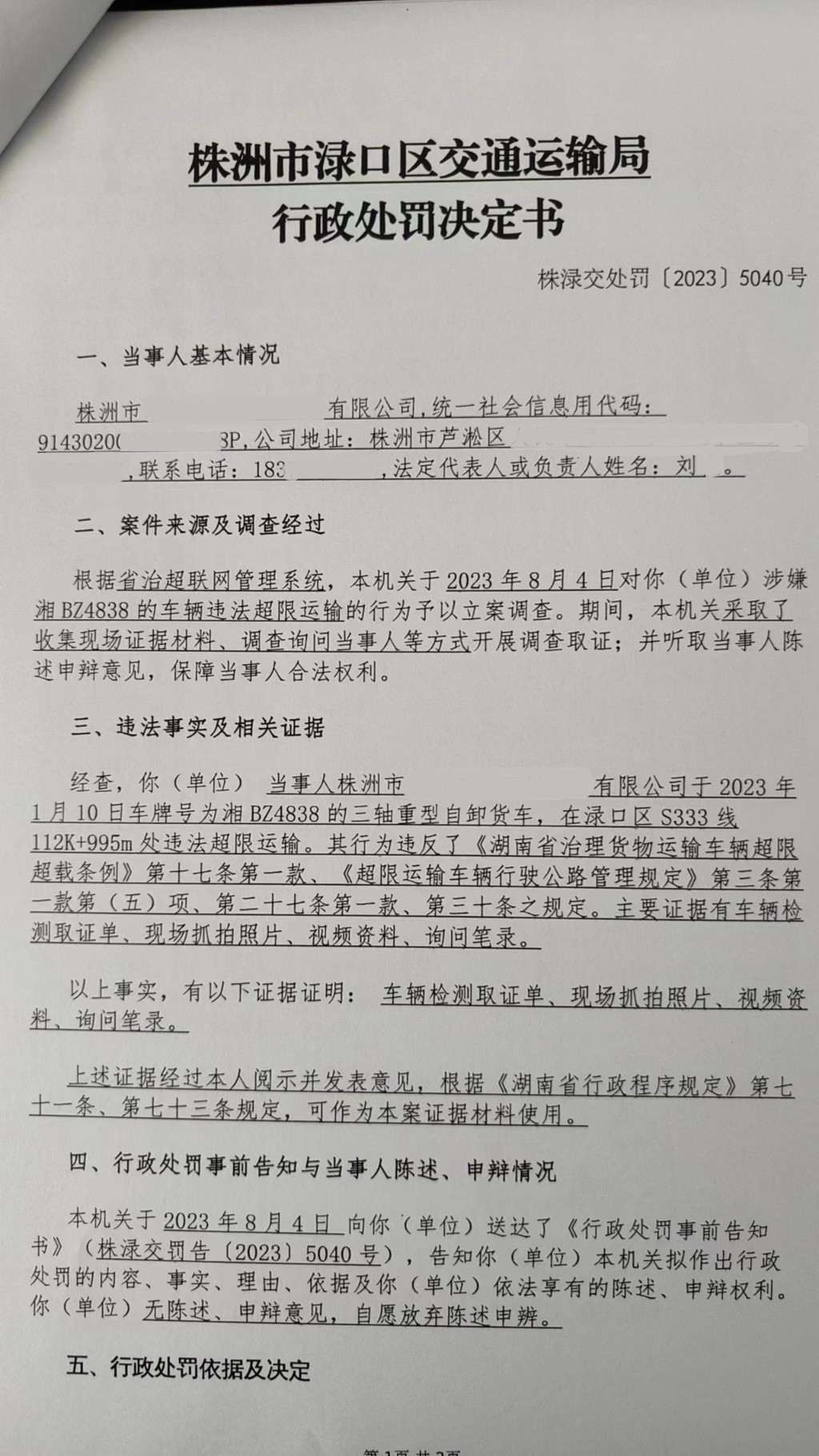 株洲市渌口区交通运输局行政处罚决定书株渌交处罚〔2023〕5040号
