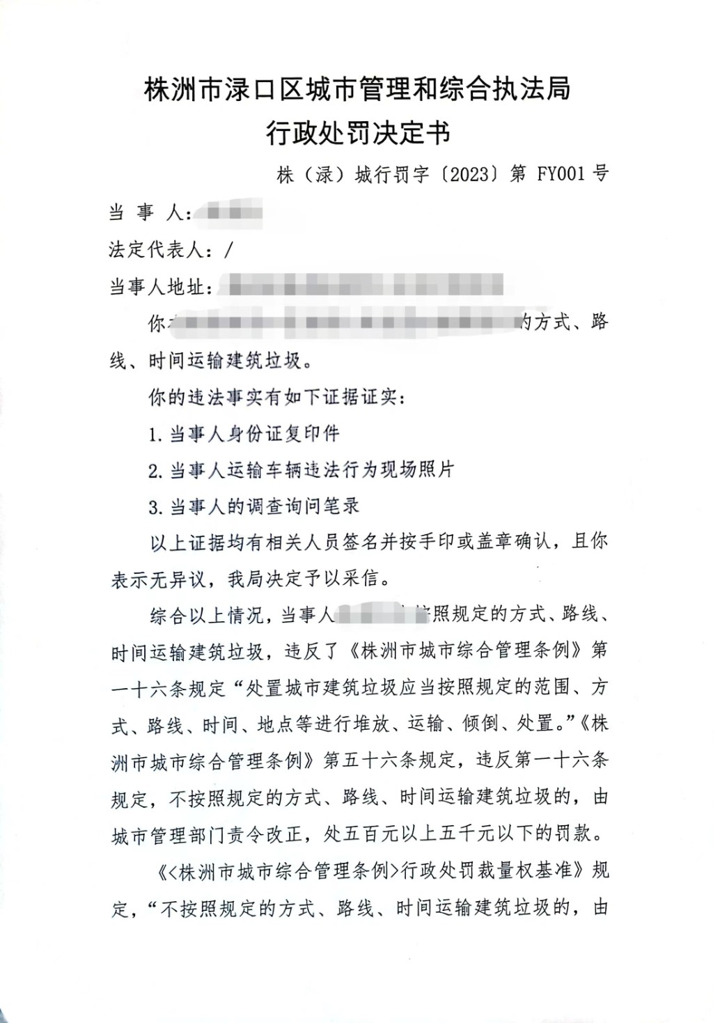 株洲市渌口区城市管理和综合执法局行政处罚决定书 株(渌)城行罚字〔2023〕第FY 001号