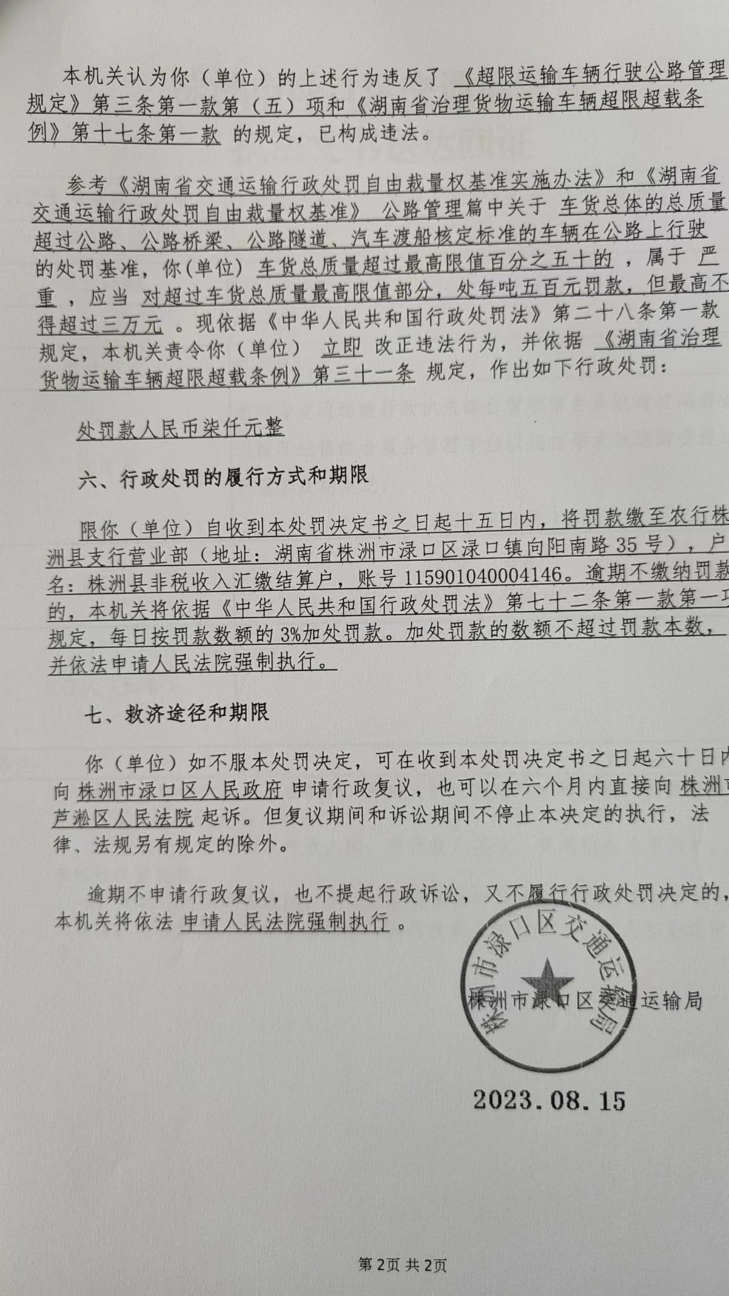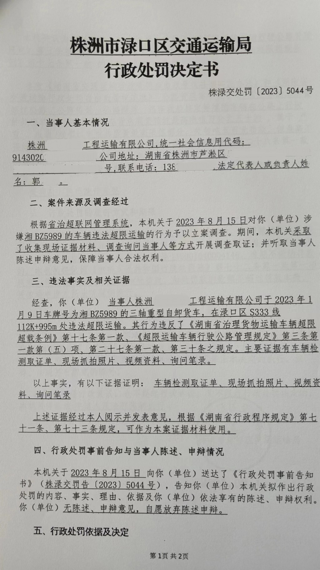 株洲市渌口区交通运输局行政处罚决定书株渌交处罚〔2023〕5044号