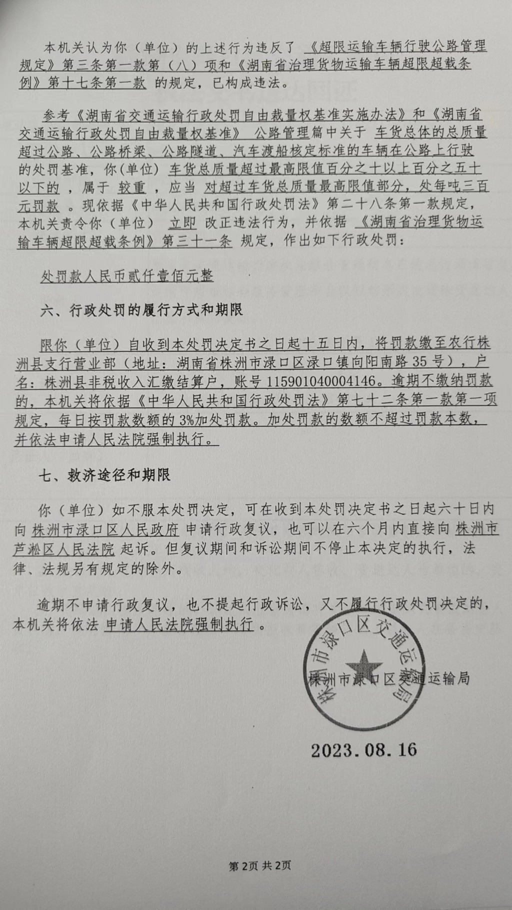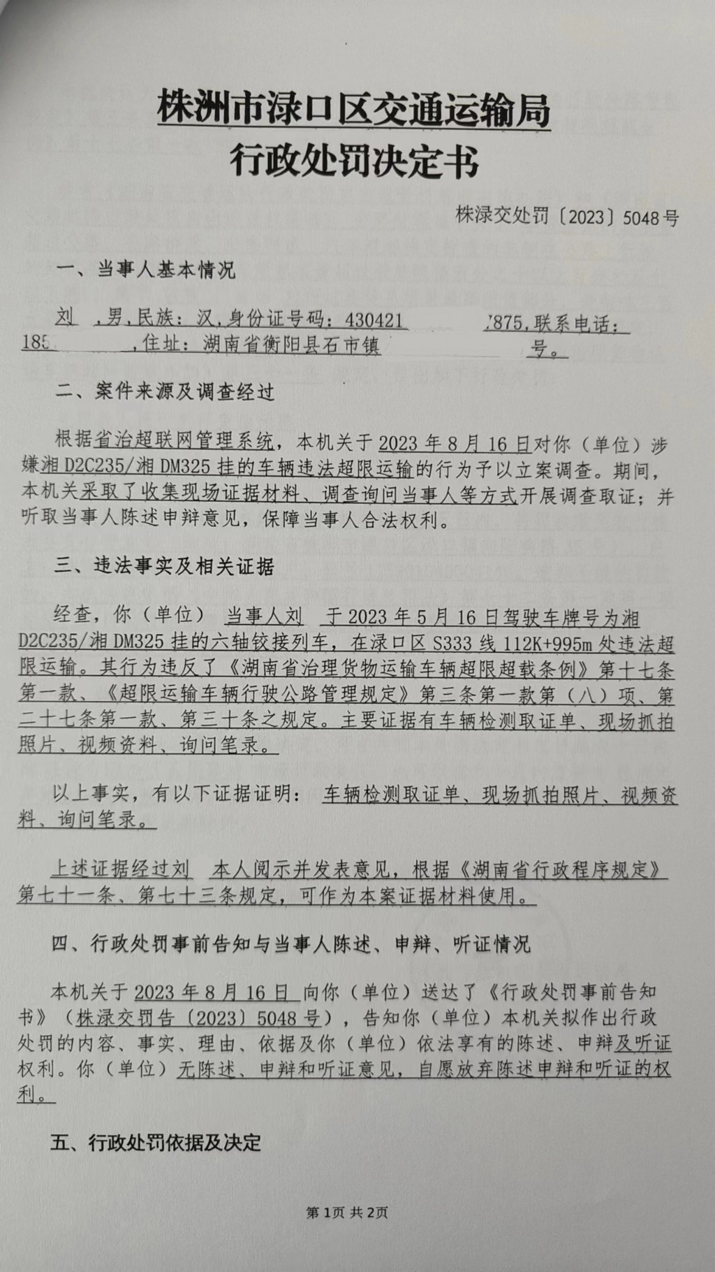 株洲市渌口区交通运输局行政处罚决定书株渌交处罚〔2023〕5048号