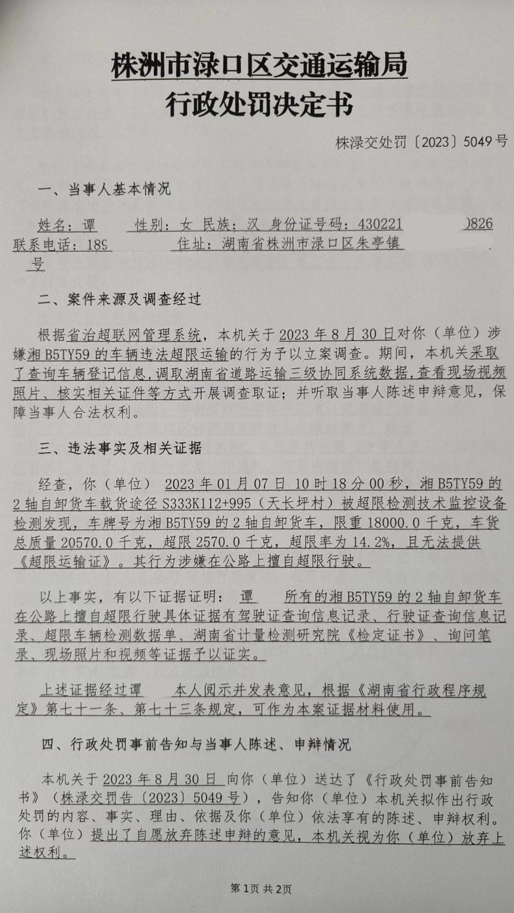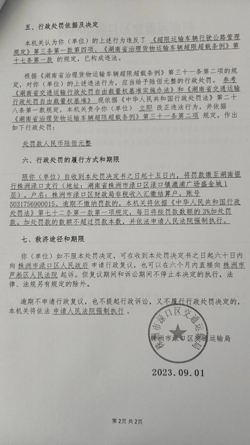 株洲市渌口区交通运输局行政处罚决定书株渌交处罚〔2023〕5049号