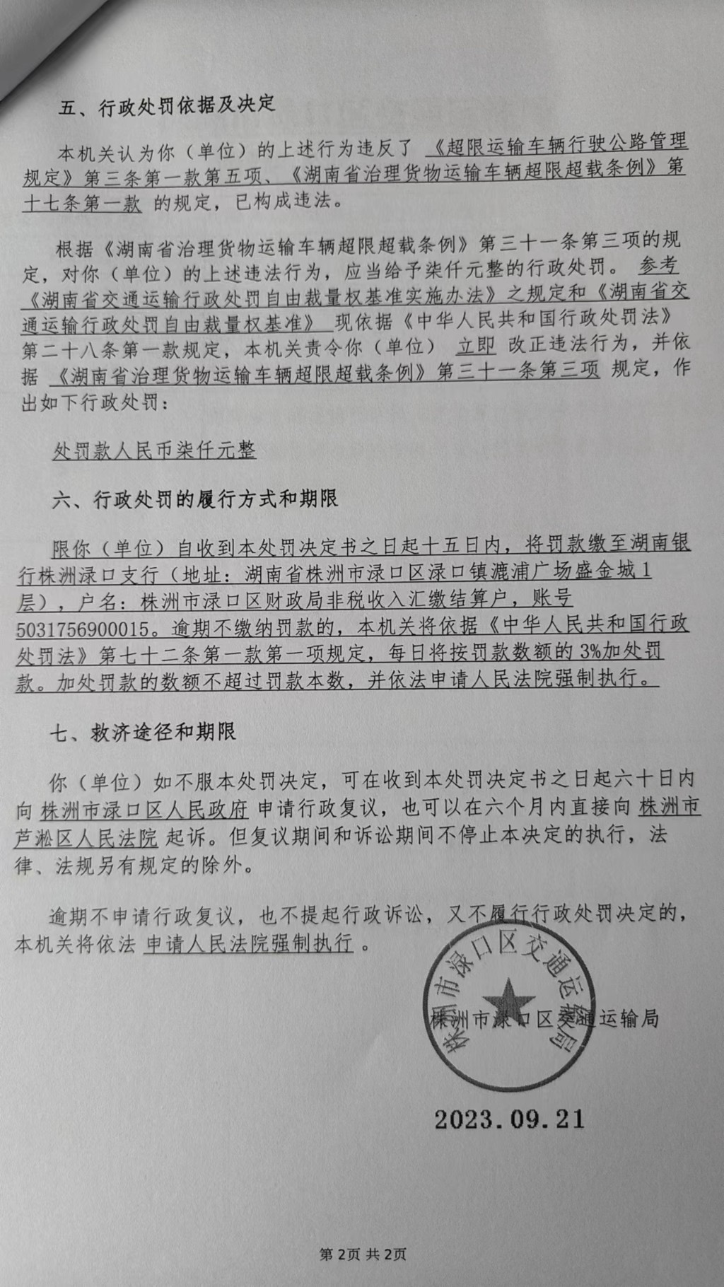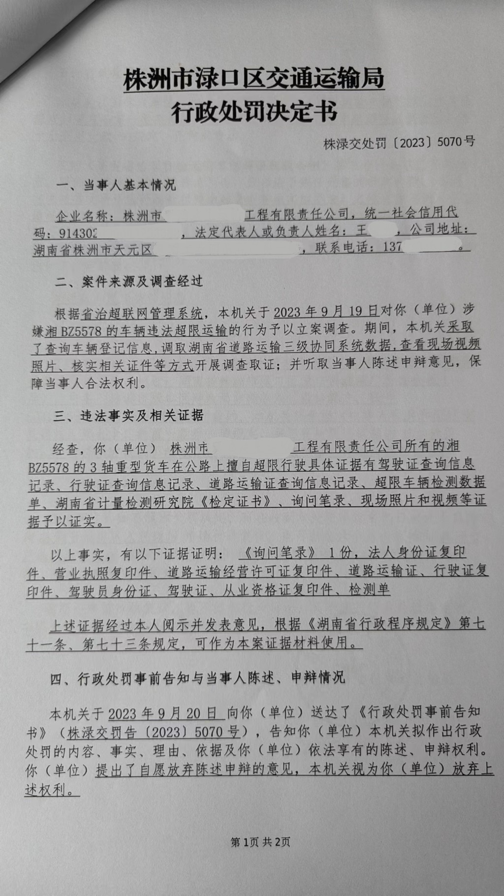 株洲市渌口区交通运输局行政处罚决定书株渌交处罚〔2023〕5070号
