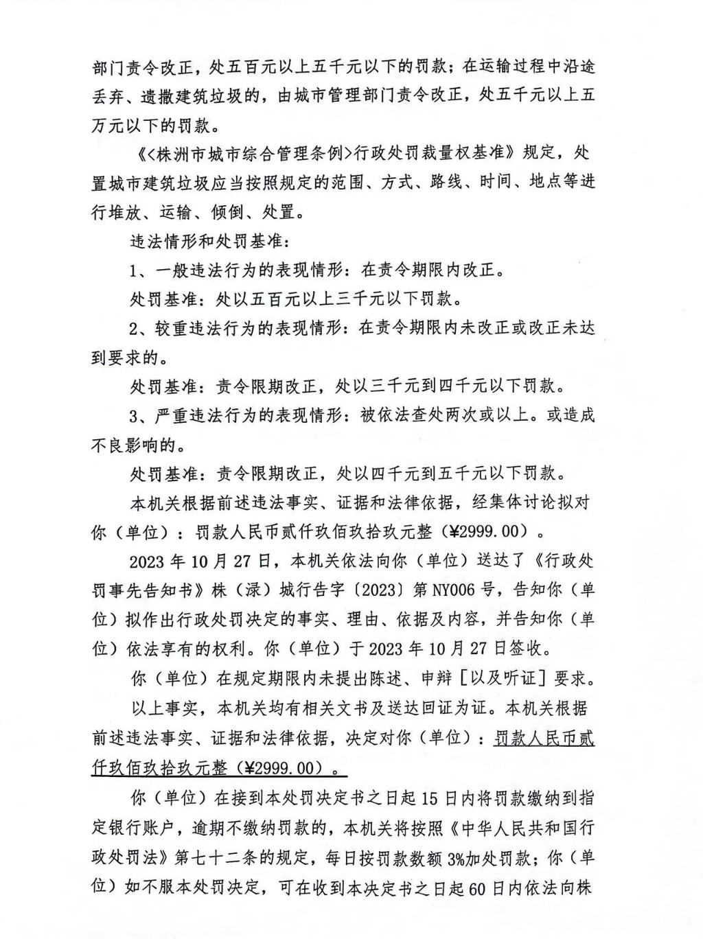 株洲市渌口区城市管理和综合执法局行政处罚决定书 株(渌)城行罚字〔2023〕第NY006号