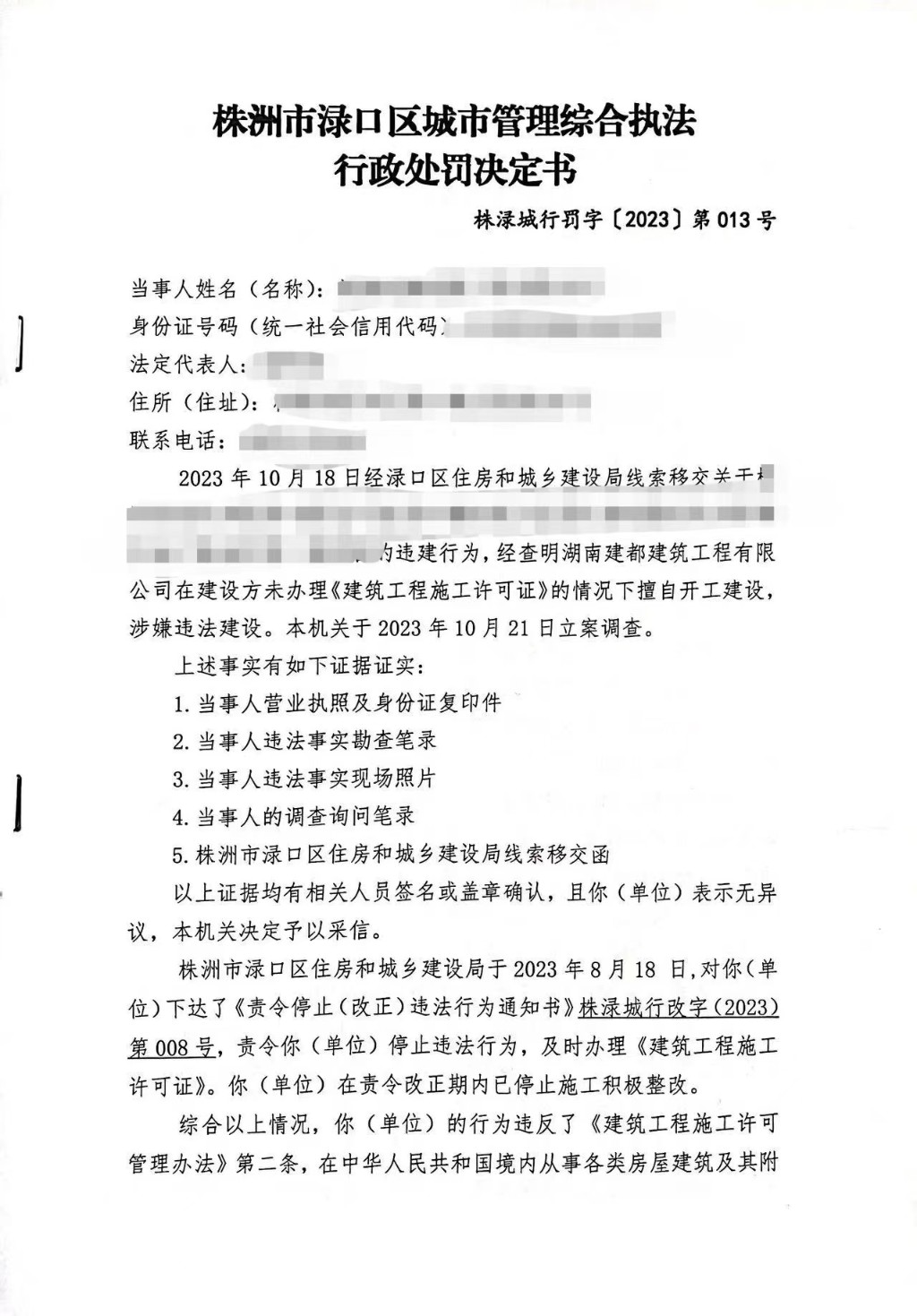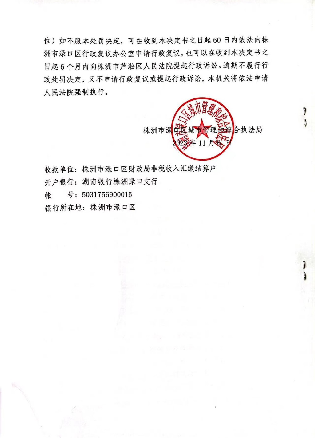 株洲市渌口区城市管理和综合执法局行政处罚决定书 株(渌)城行罚字〔2023〕第013号