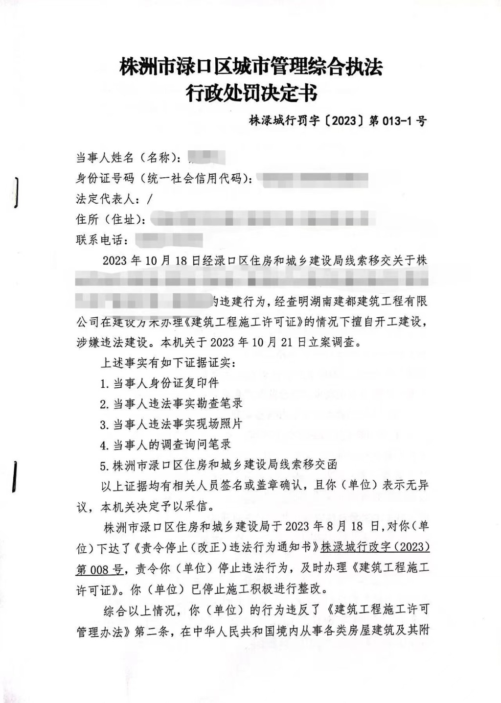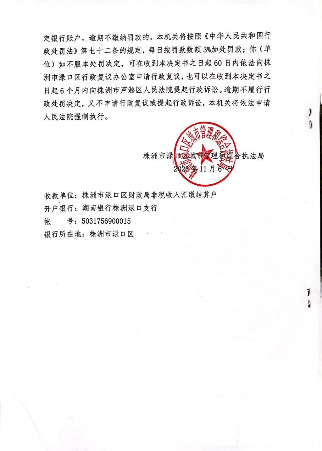 株洲市渌口区城市管理和综合执法局行政处罚决定书 株(渌)城行罚字〔2023〕第013-1号