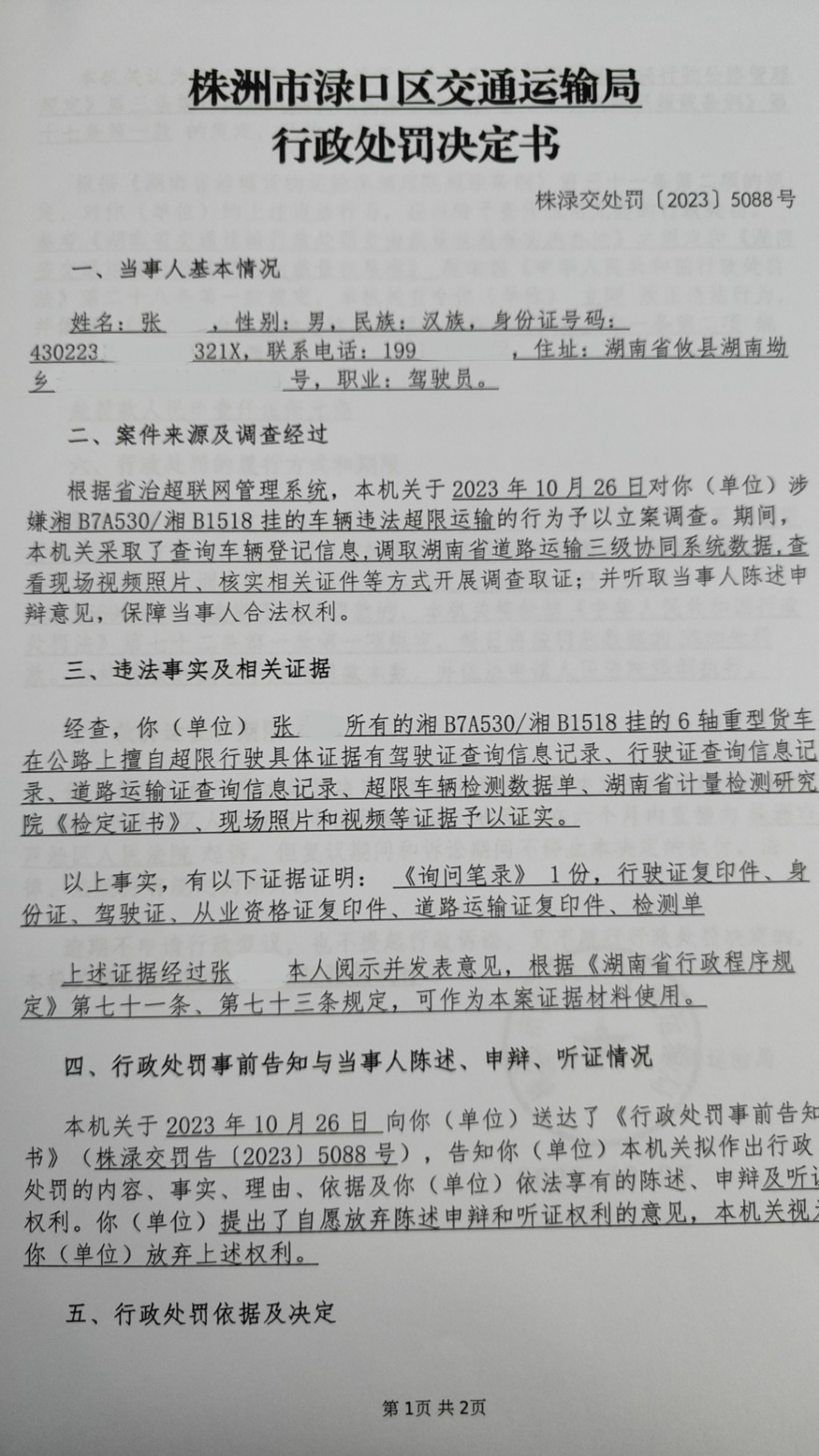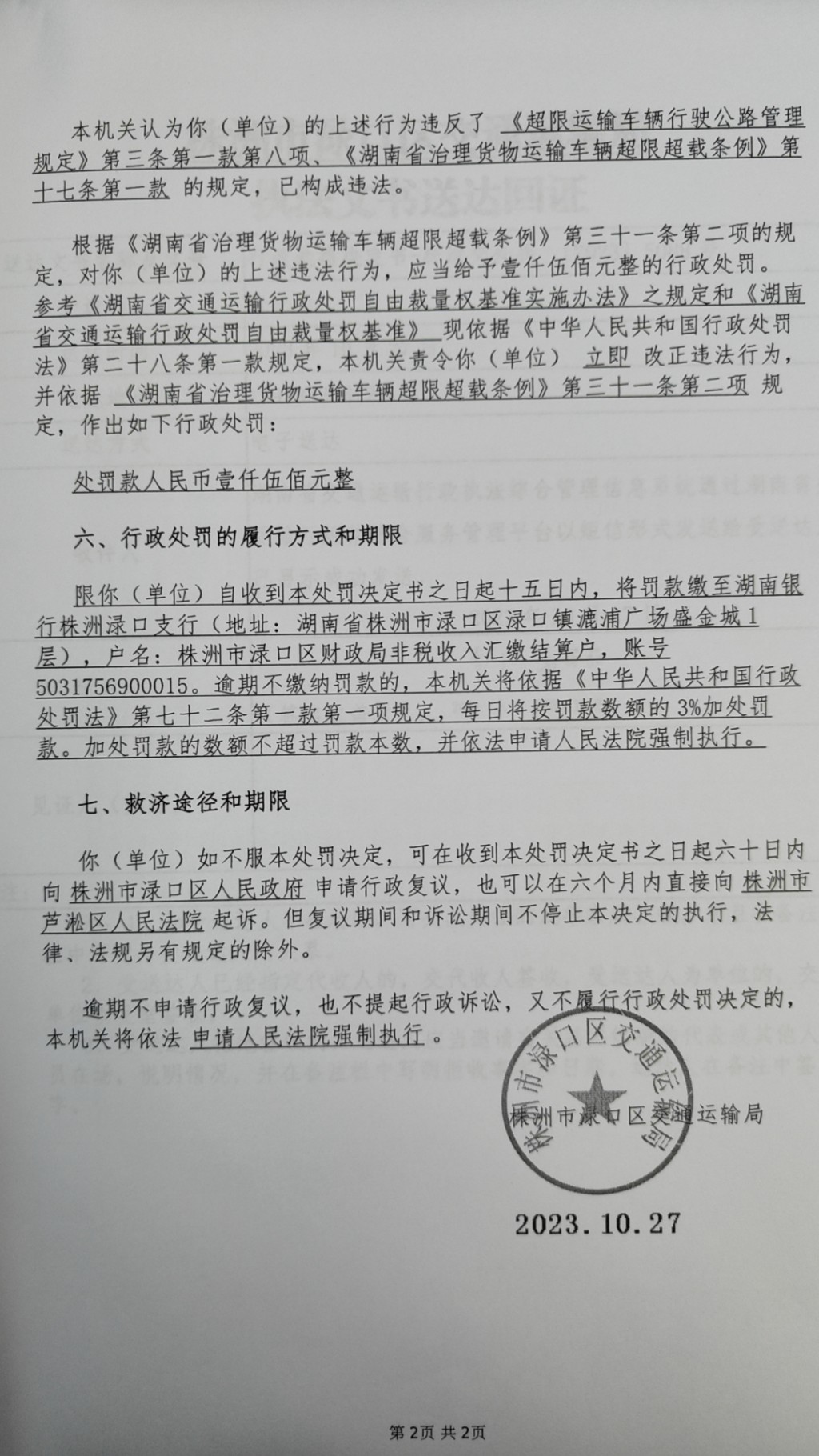 株洲市渌口区交通运输局行政处罚决定书株渌交处罚〔2023〕5088号