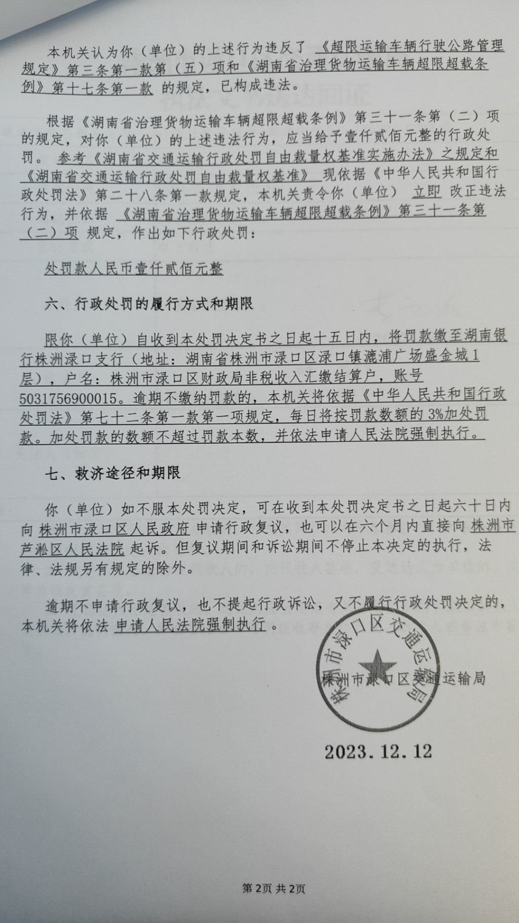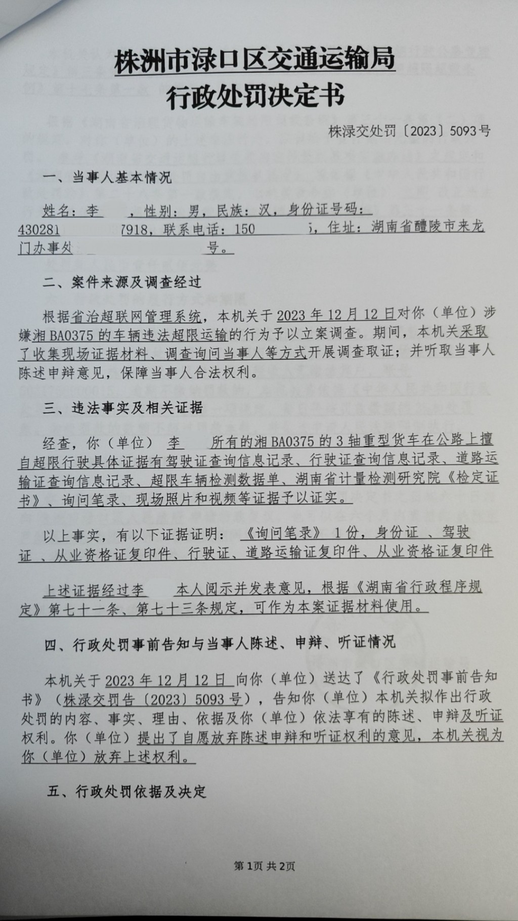 株洲市渌口区交通运输局行政处罚决定书株渌交处罚〔2023〕5093号