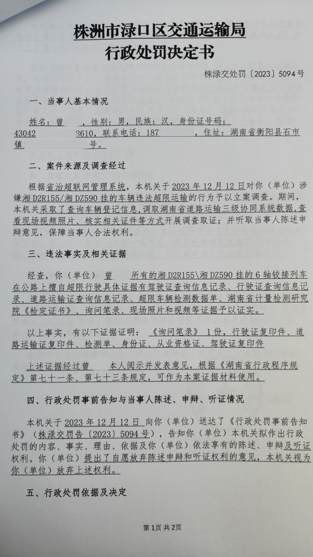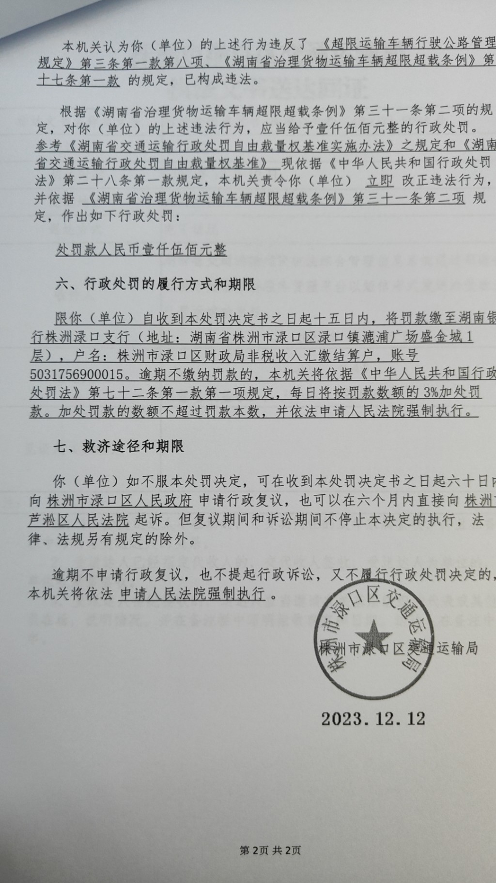 株洲市渌口区交通运输局行政处罚决定书株渌交处罚〔2023〕5094号