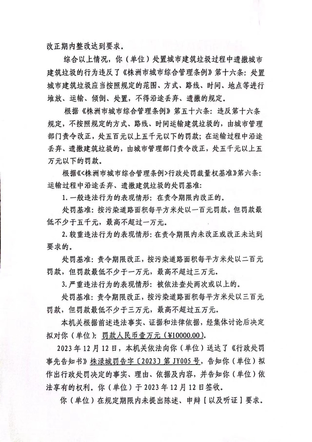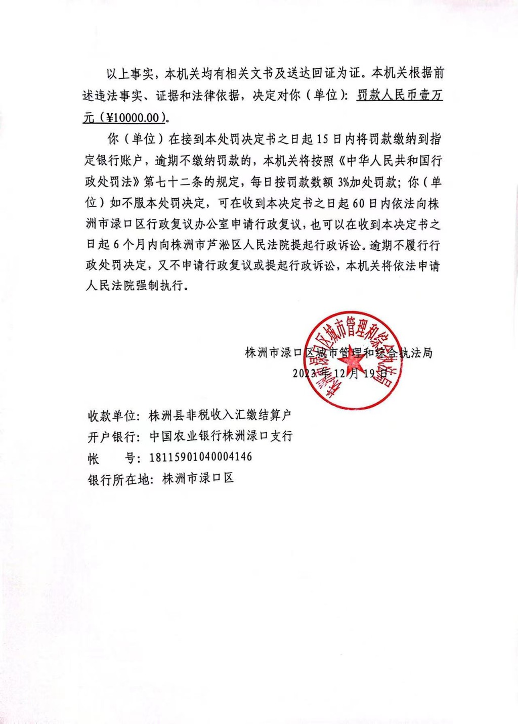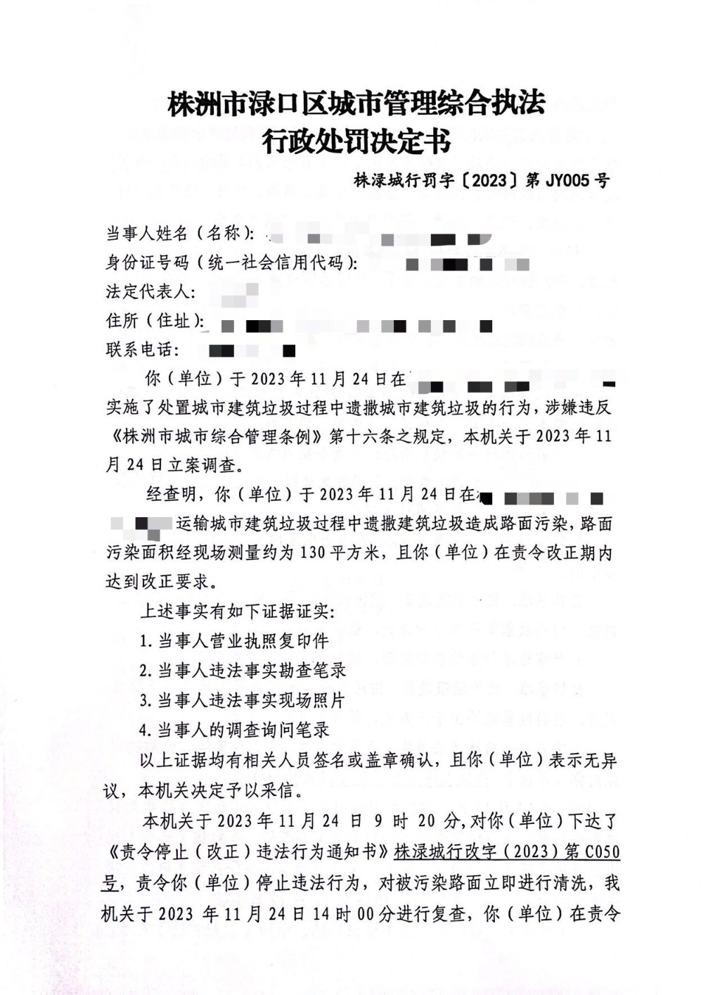 株洲市渌口区城市管理和综合执法局行政处罚决定书 株(渌)城行罚字〔2023〕第JY005号