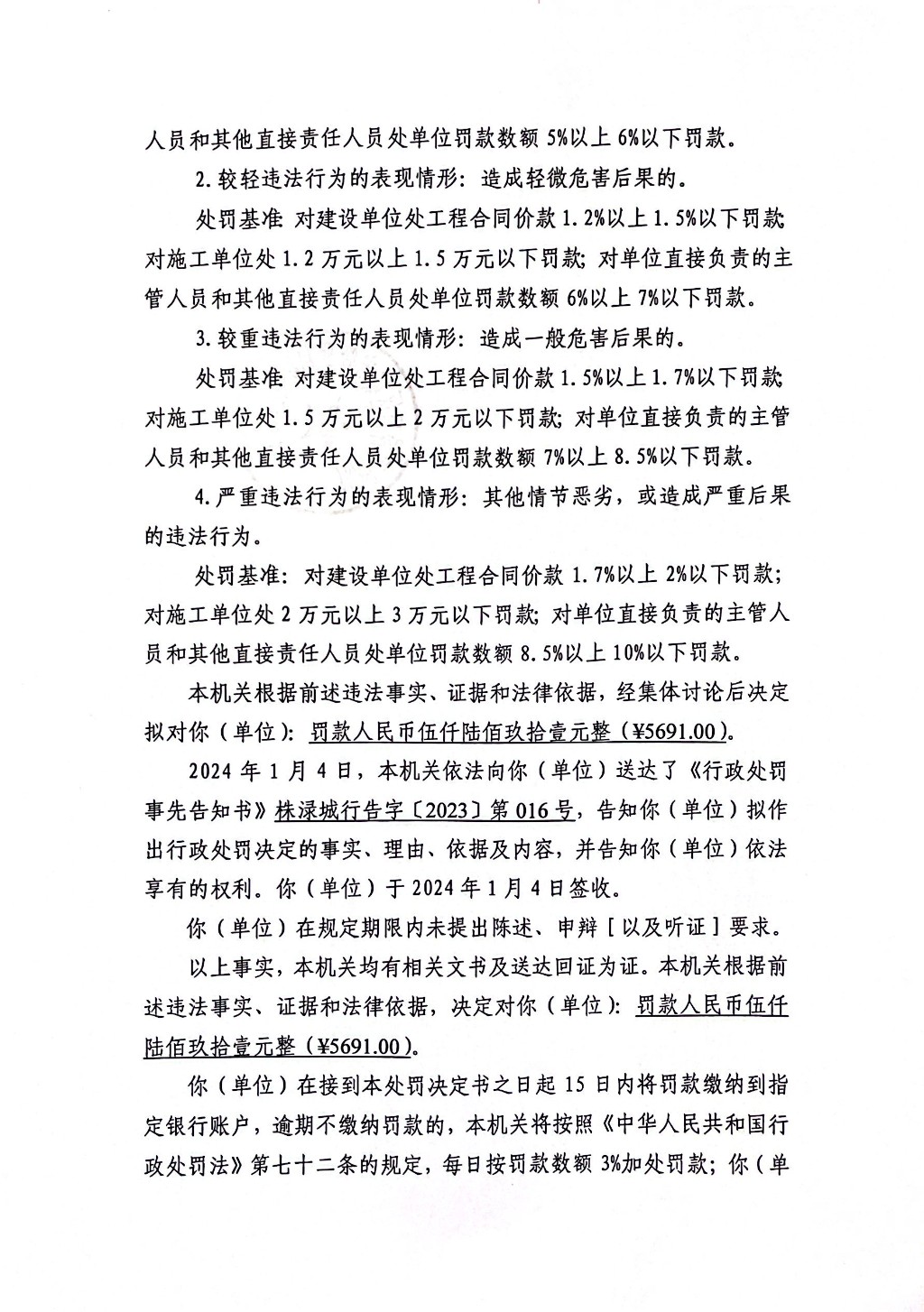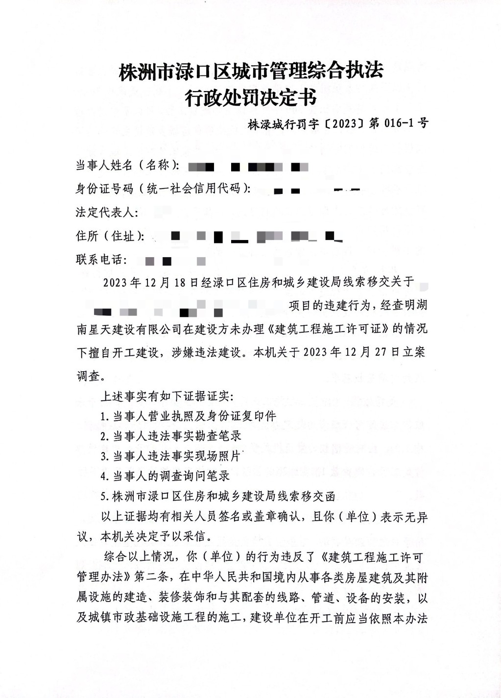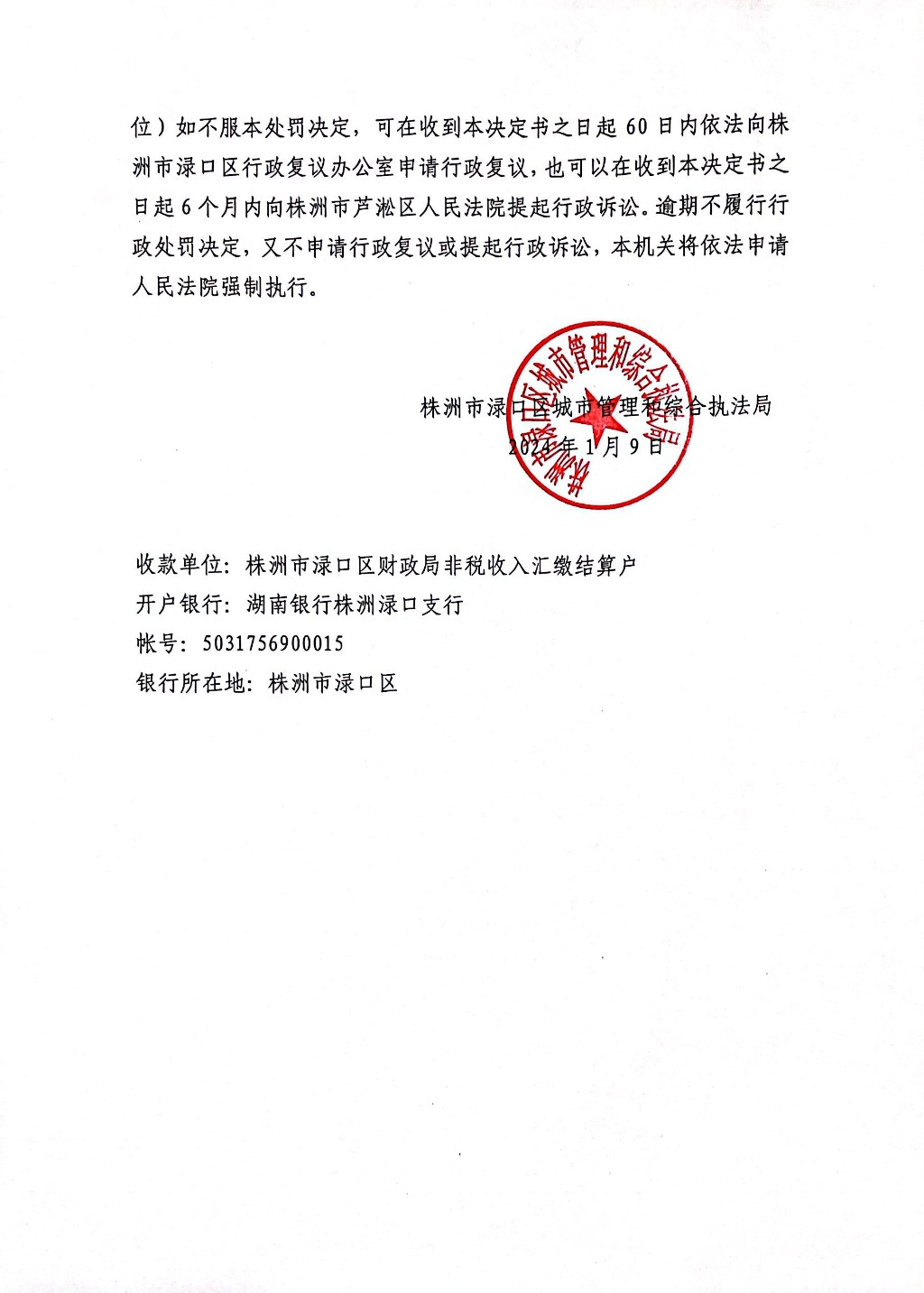 株洲市渌口区城市管理和综合执法局行政处罚决定书 株(渌)城行罚字〔2023〕第016-1号