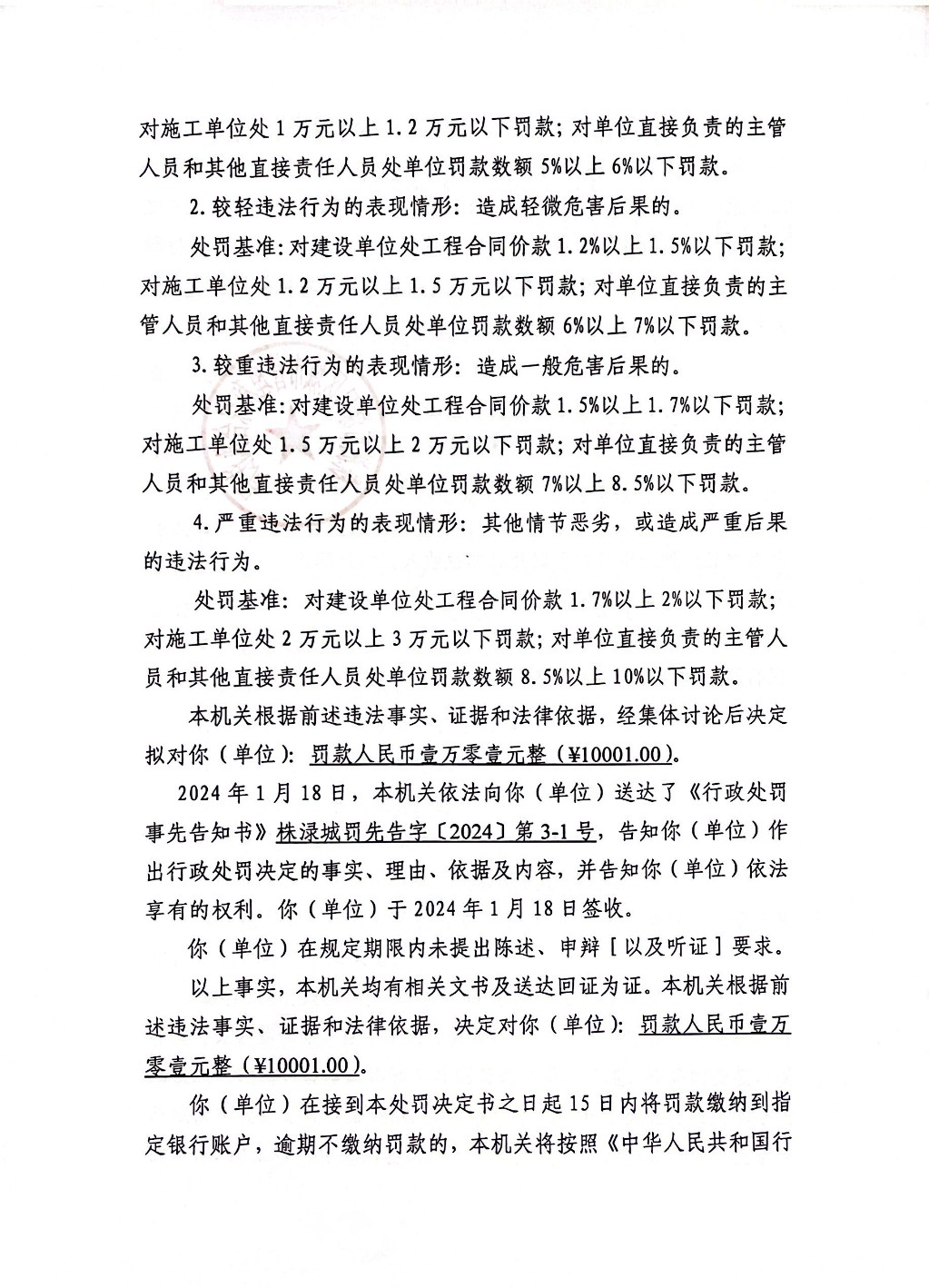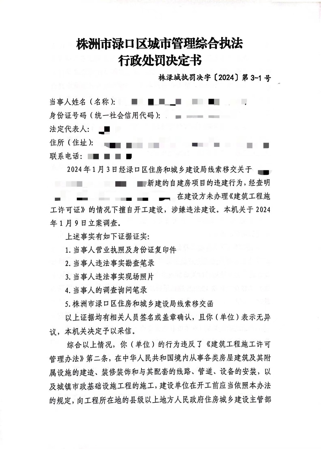 株洲市渌口区城市管理和综合执法局行政处罚决定书 株(渌)城行罚字〔2024〕第3-1号
