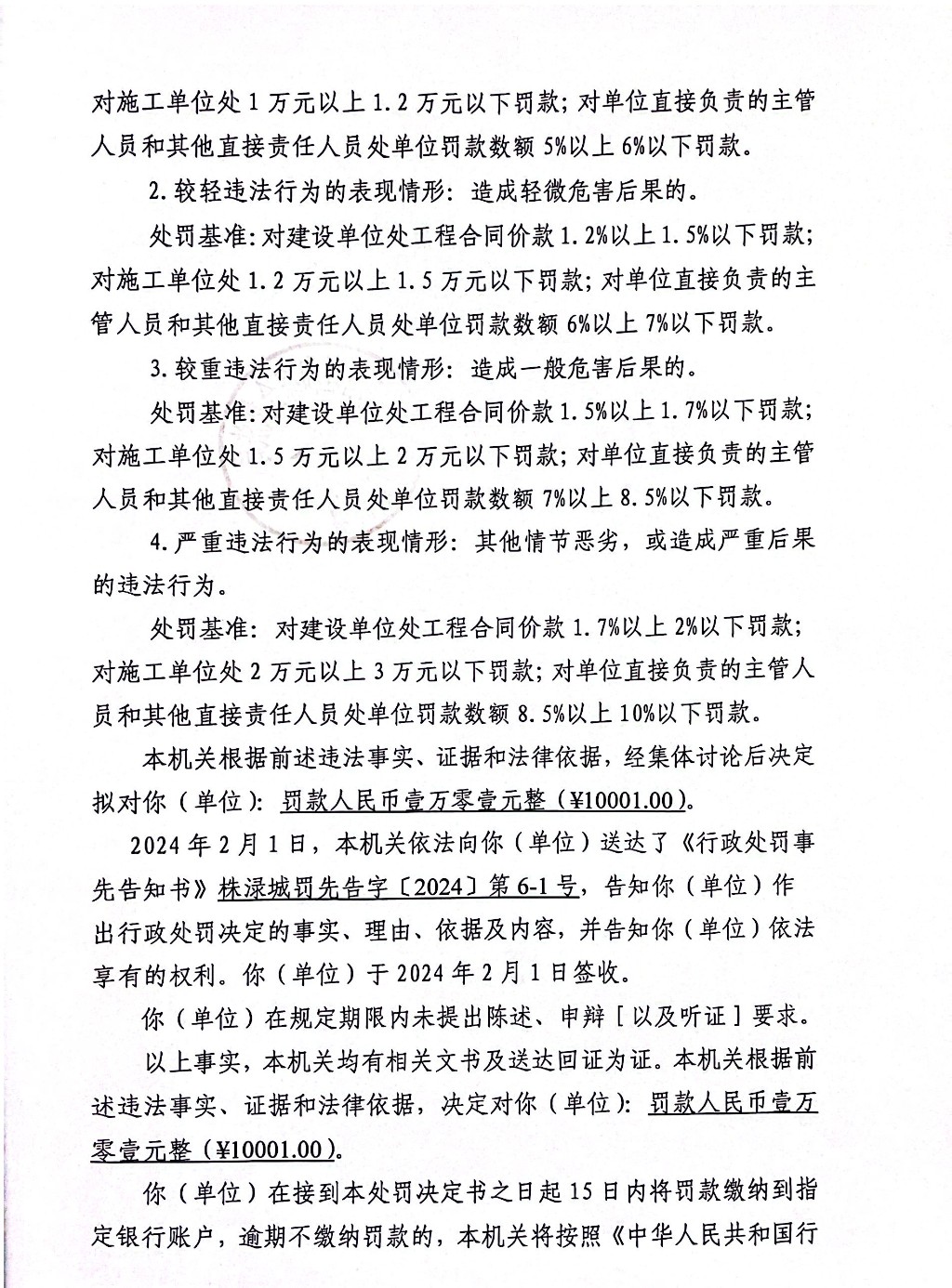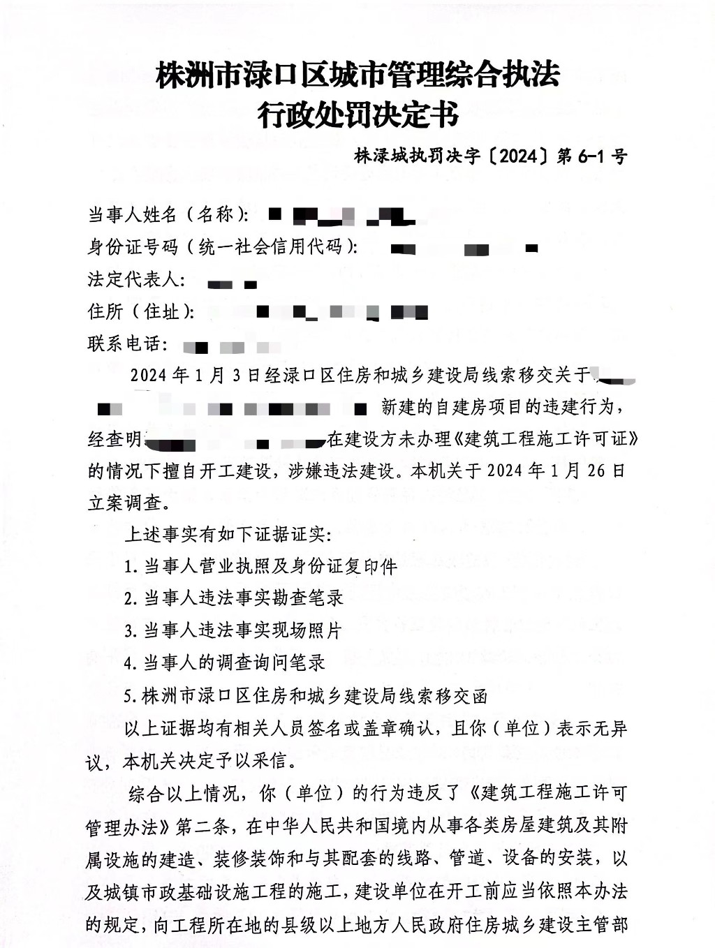 株洲市渌口区城市管理和综合执法局行政处罚决定书 株(渌)城行罚字〔2024〕第6-1号
