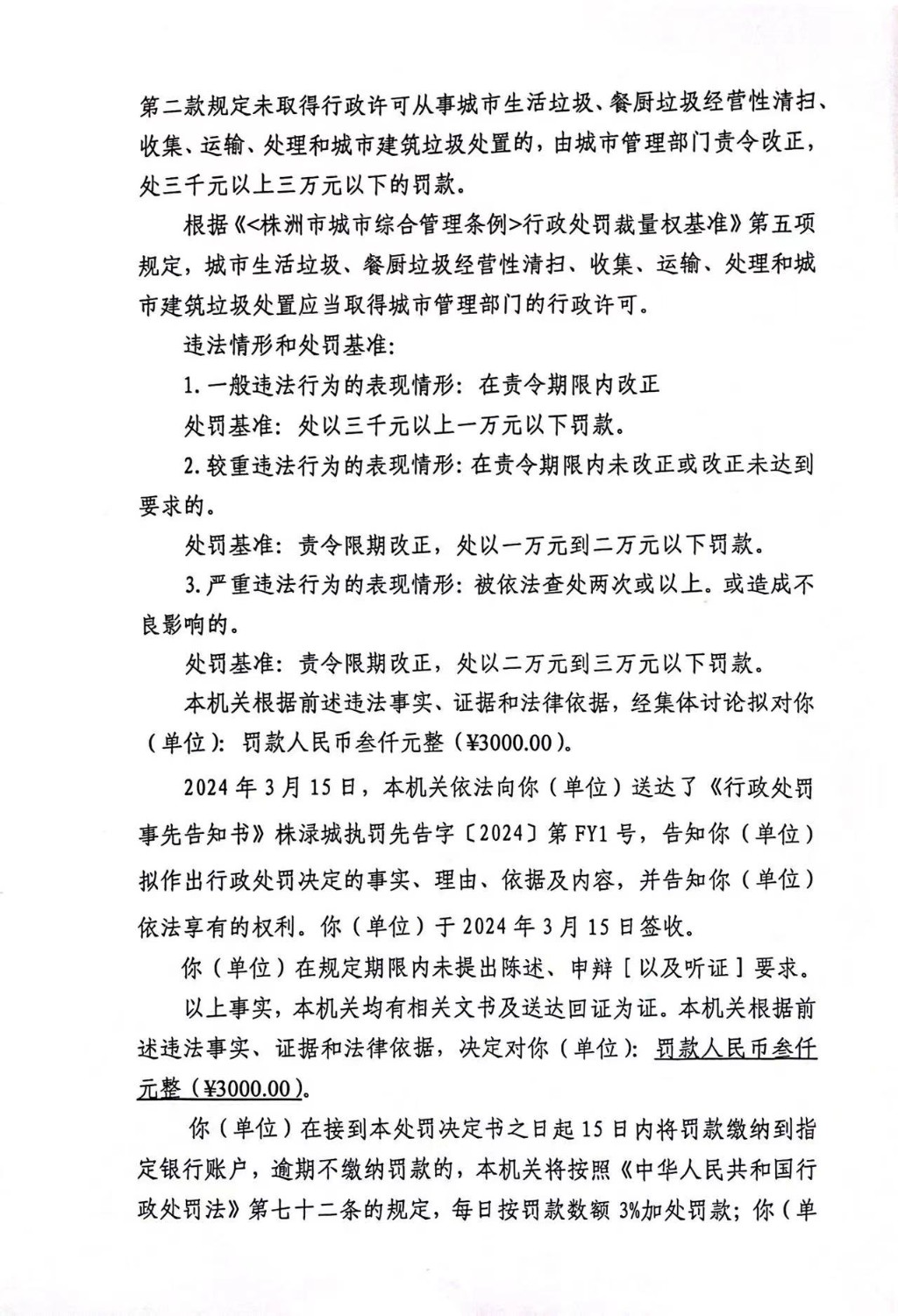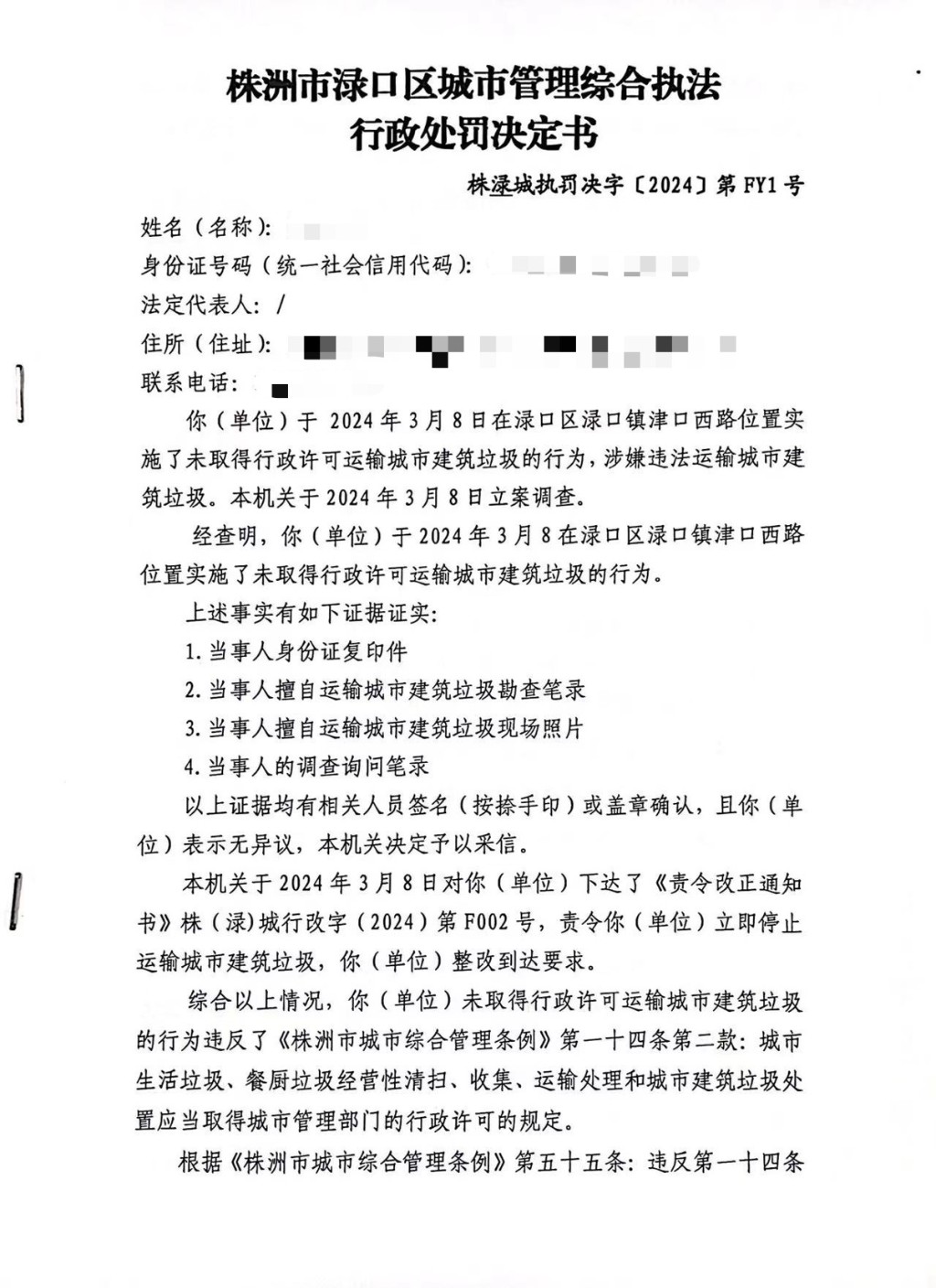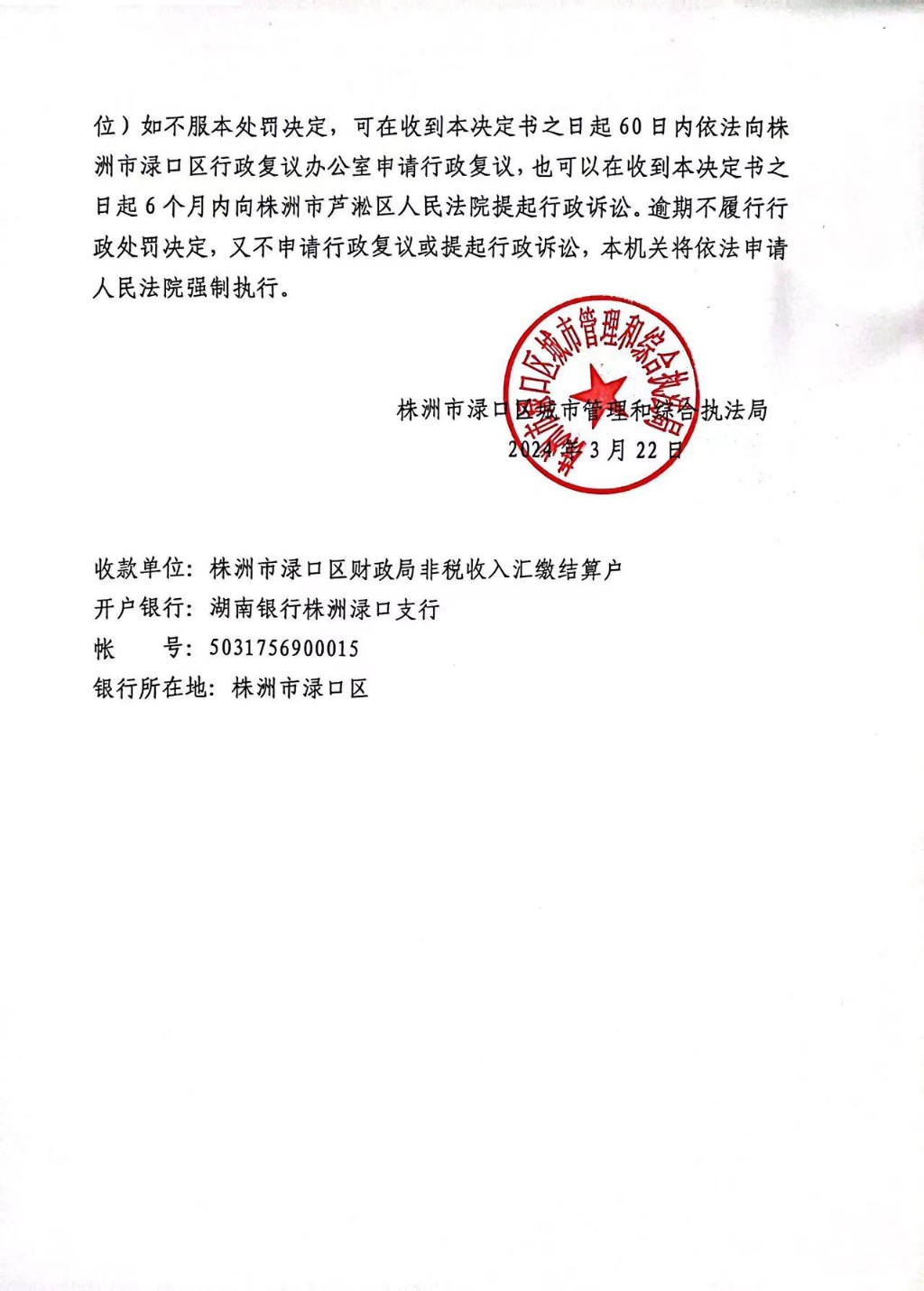 株洲市渌口区城市管理和综合执法局行政处罚决定书 株(渌)城行罚字〔2024〕第FY1号