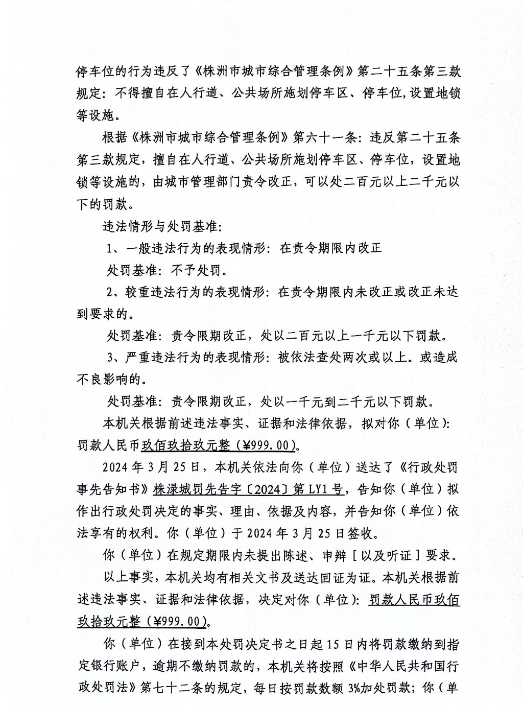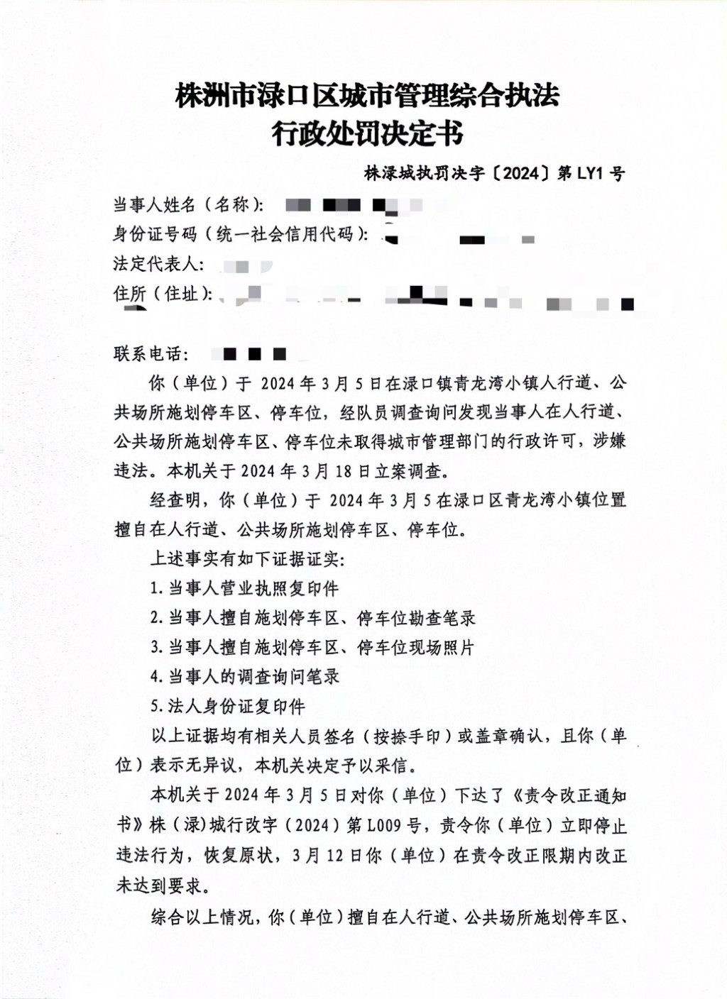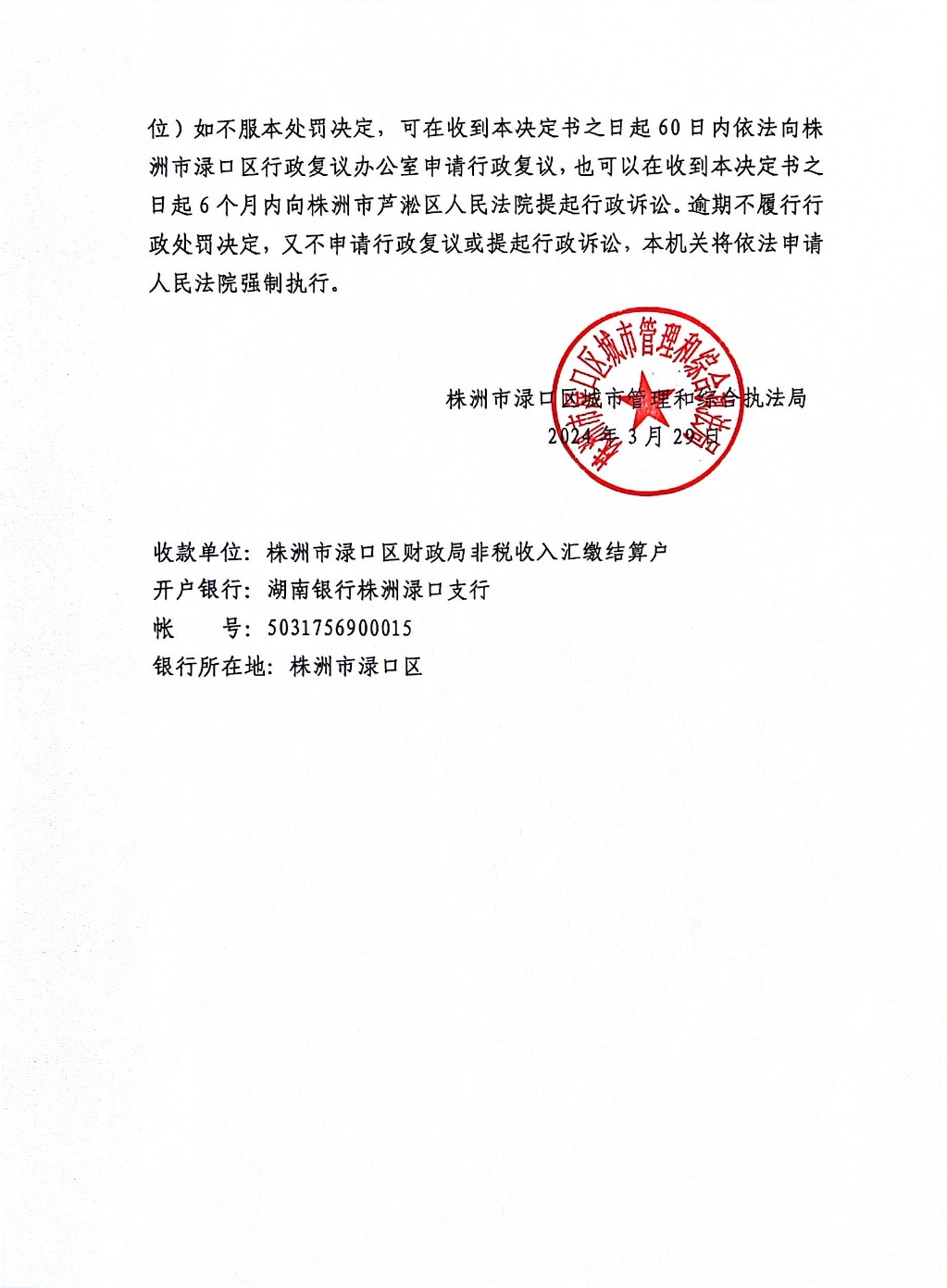 株洲市渌口区城市管理和综合执法局行政处罚决定书 株(渌)城行罚字〔2024〕第LY1号