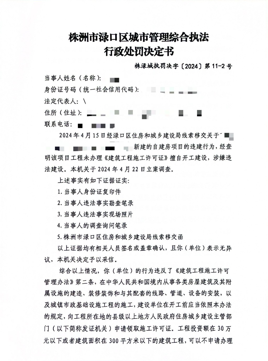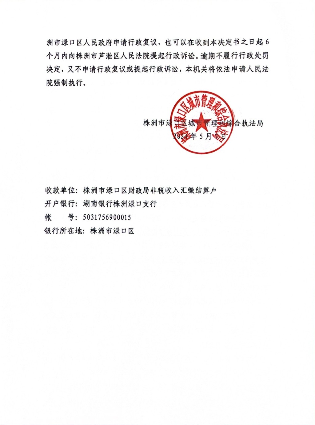 株洲市渌口区城市管理和综合执法局行政处罚决定书 株(渌)城行罚字〔2024〕第11-2号