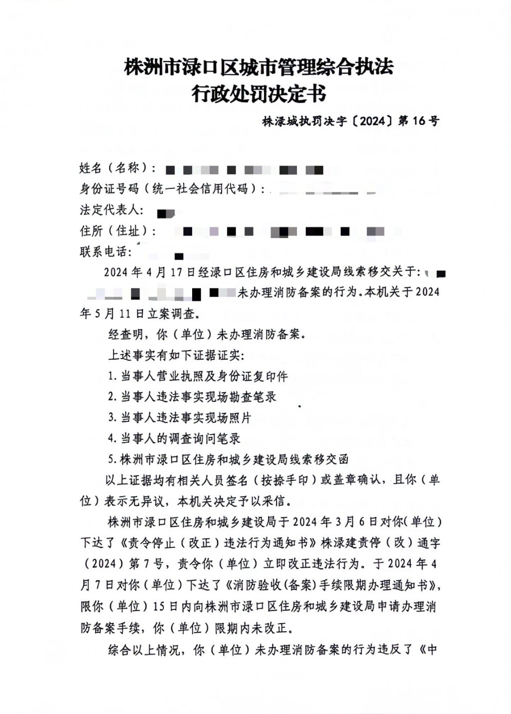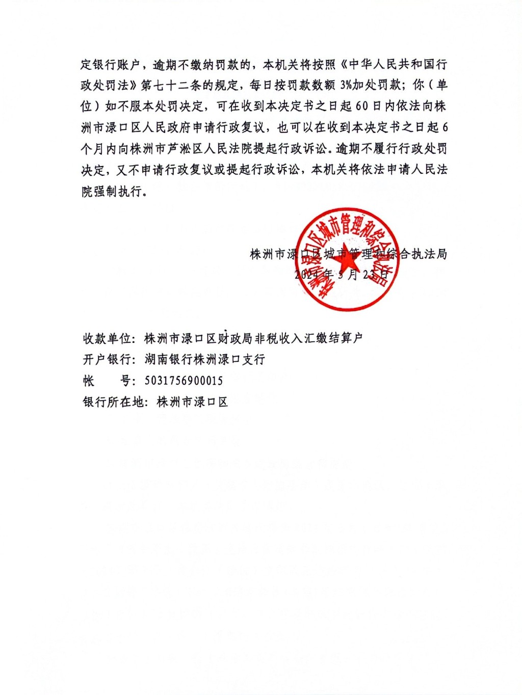 株洲市渌口区城市管理和综合执法局行政处罚决定书 株(渌)城行罚字〔2024〕第16号