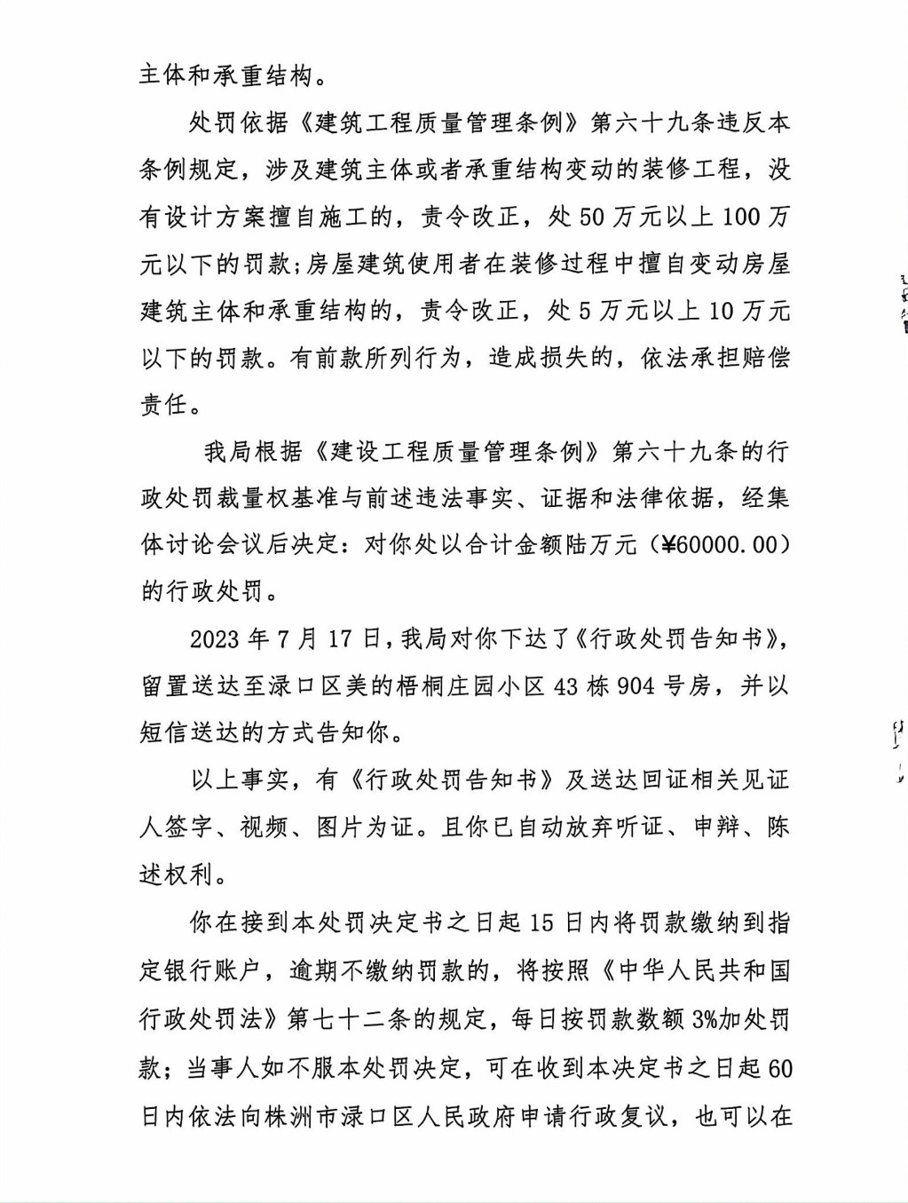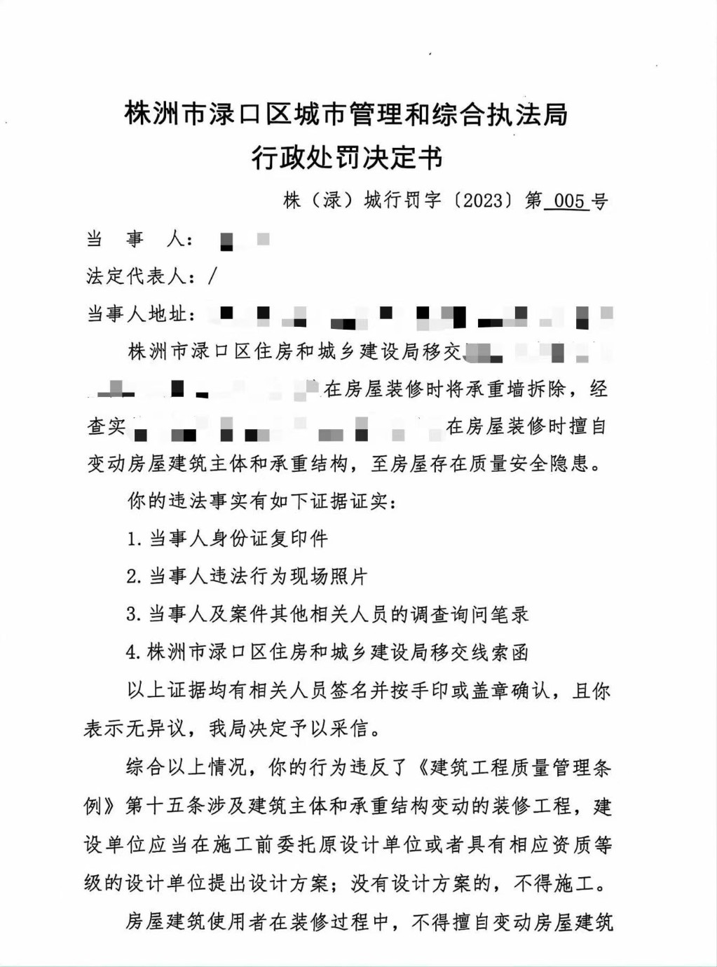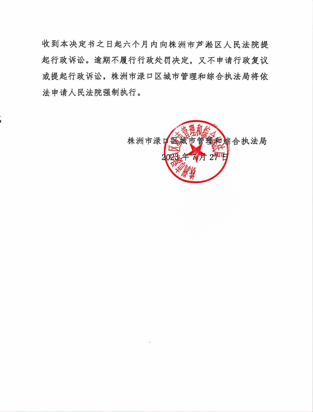 株洲市渌口区城市管理和综合执法局行政处罚决定书 株(渌)城行罚字〔2023〕第005号