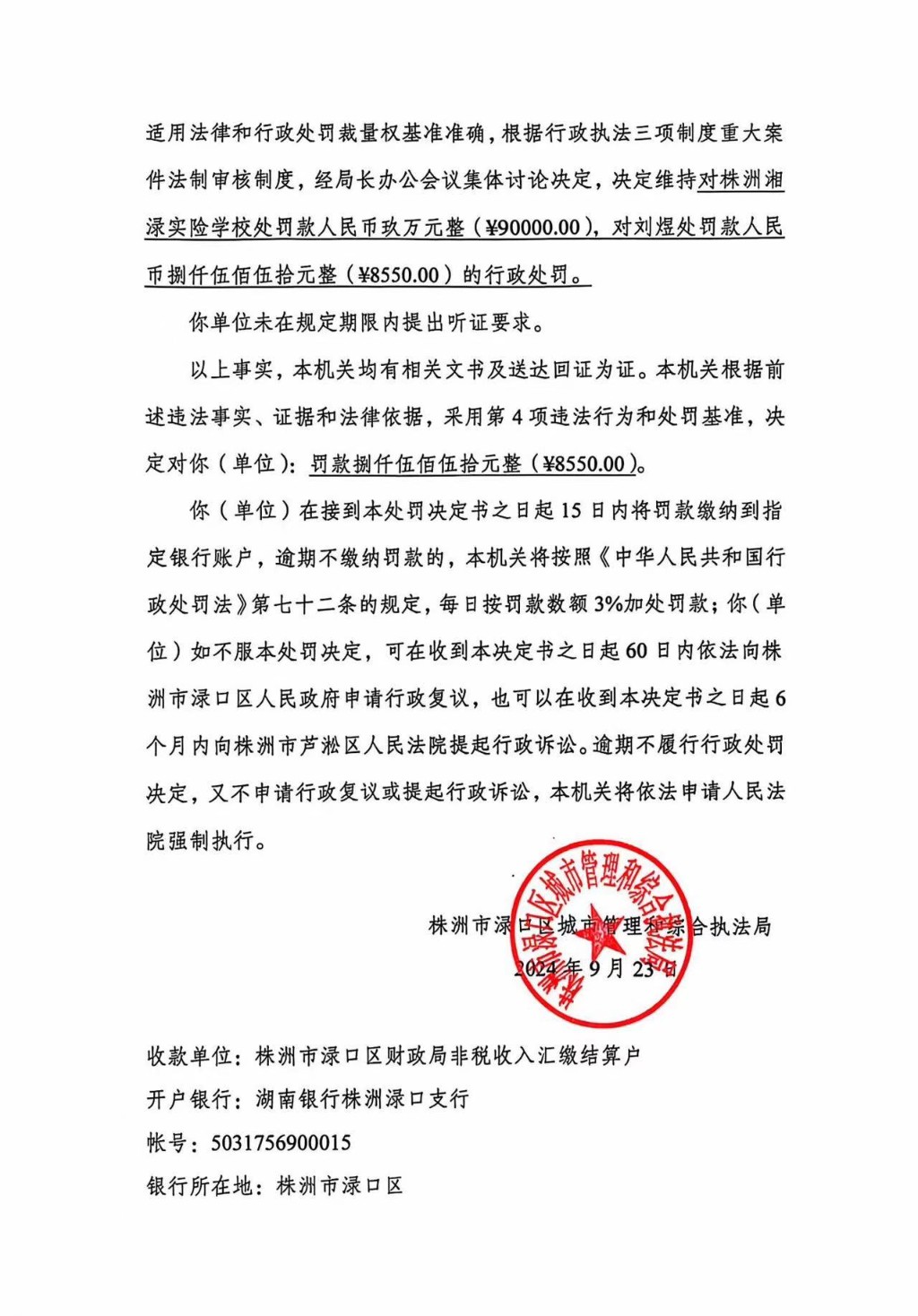 株洲市渌口区城市管理和综合执法局行政处罚决定书 株(渌)城执罚决字〔2024〕第22-1号