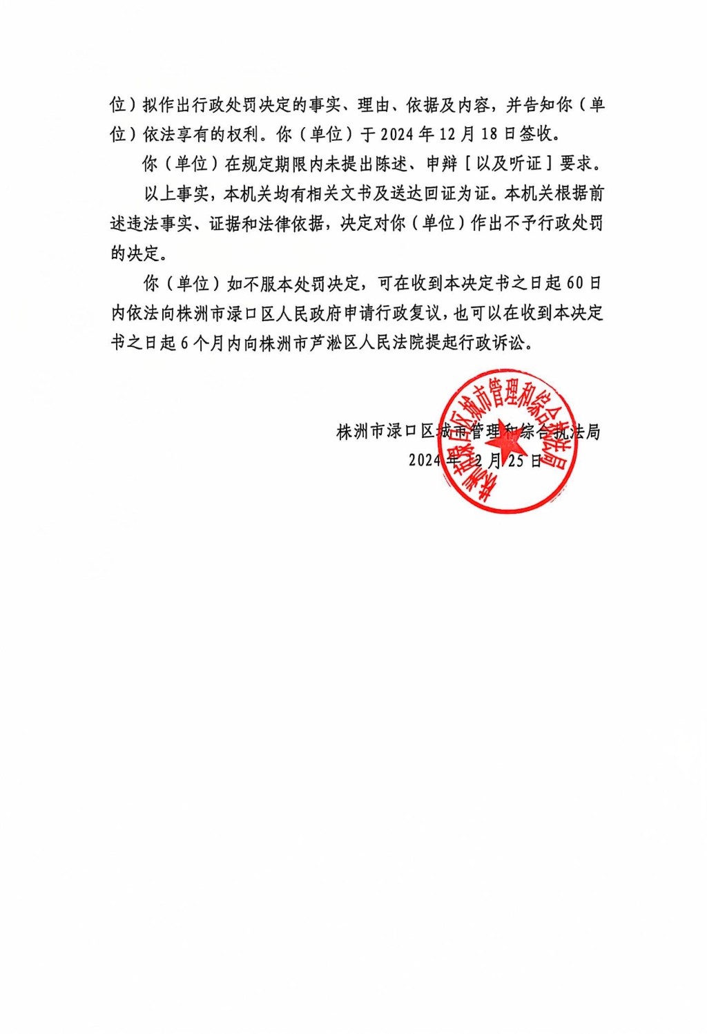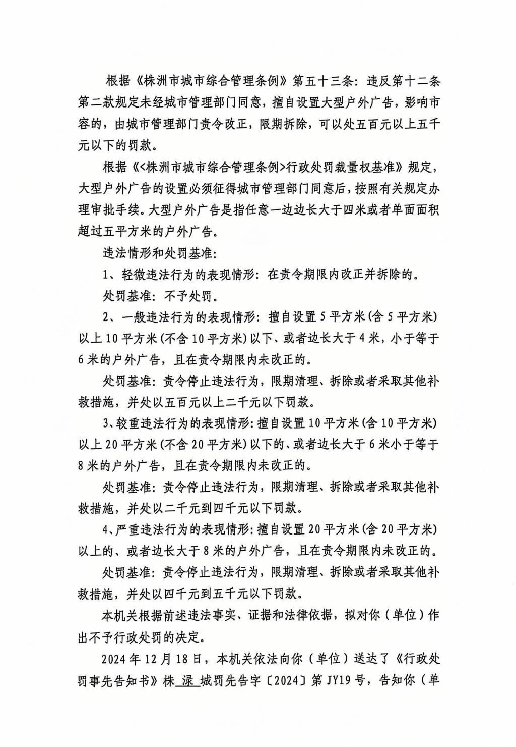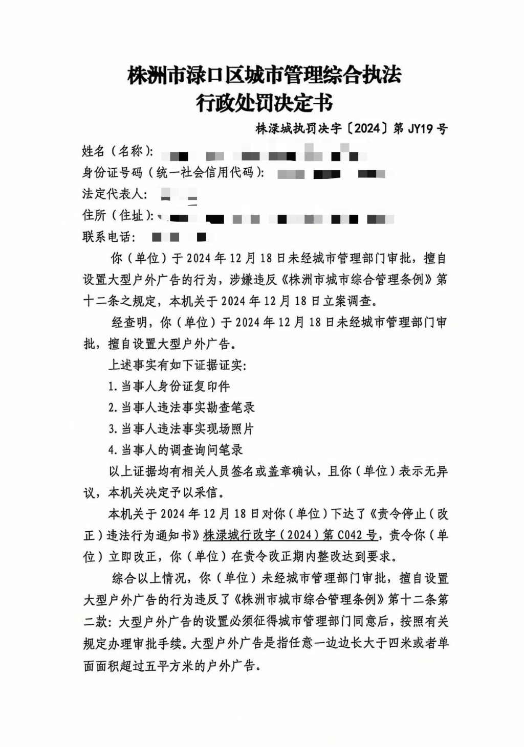 株洲市渌口区城市管理和综合执法局行政处罚决定书 株(渌)城执罚决字〔2024〕第JY19号
