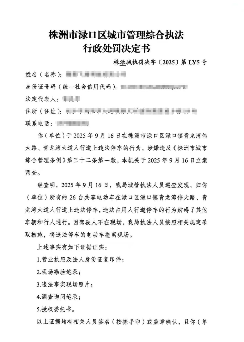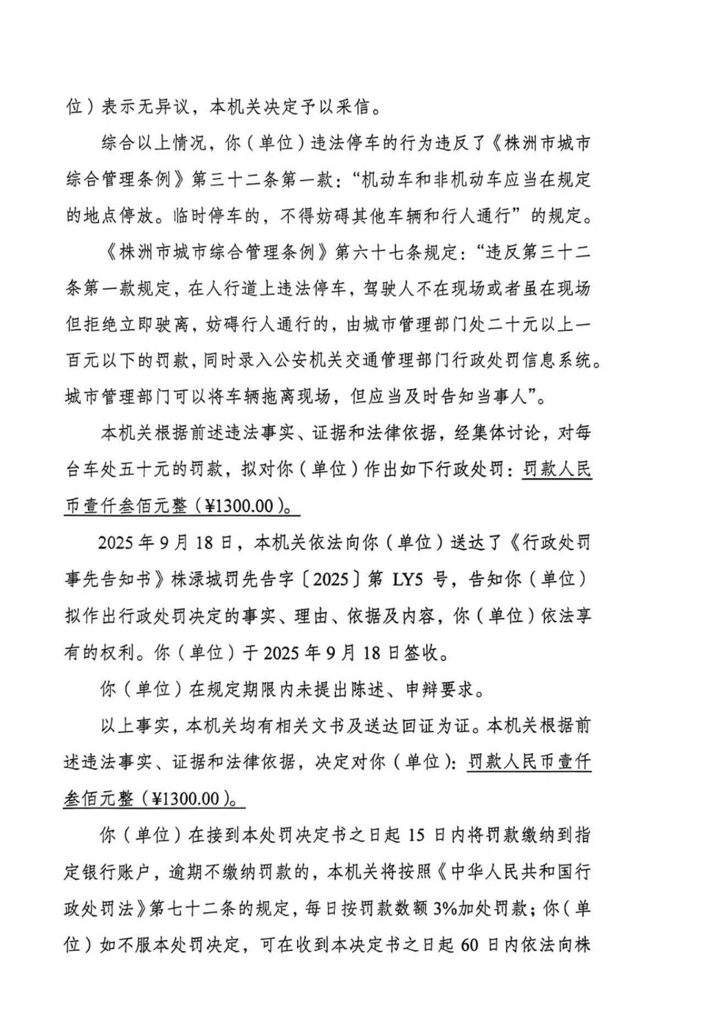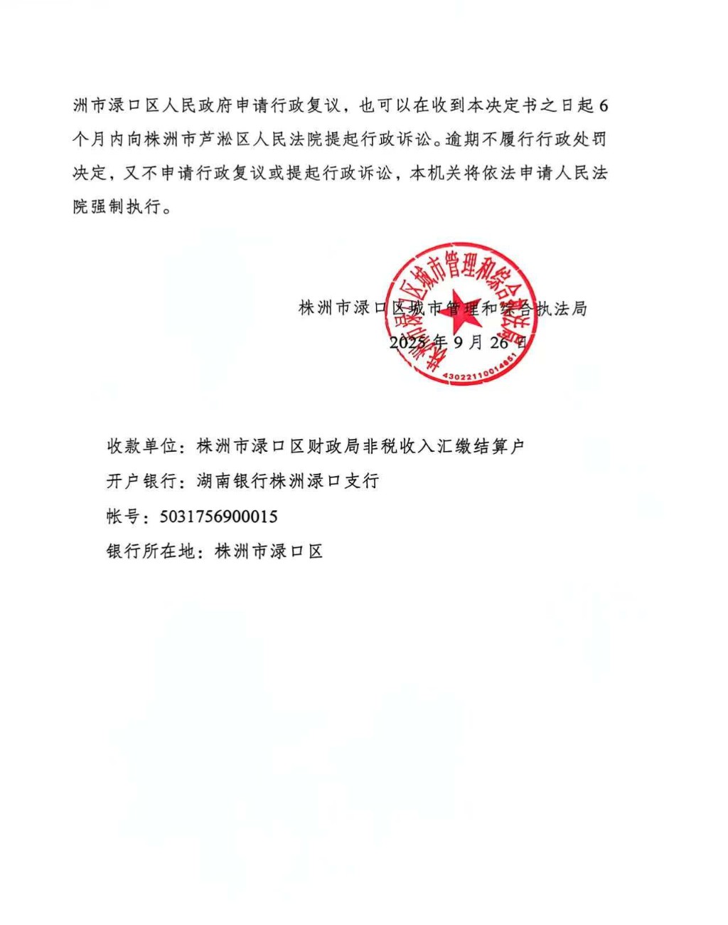 株洲市渌口区城市管理和综合执法局行政处罚决定书 株(渌)城执罚决字〔2025〕第LY5号