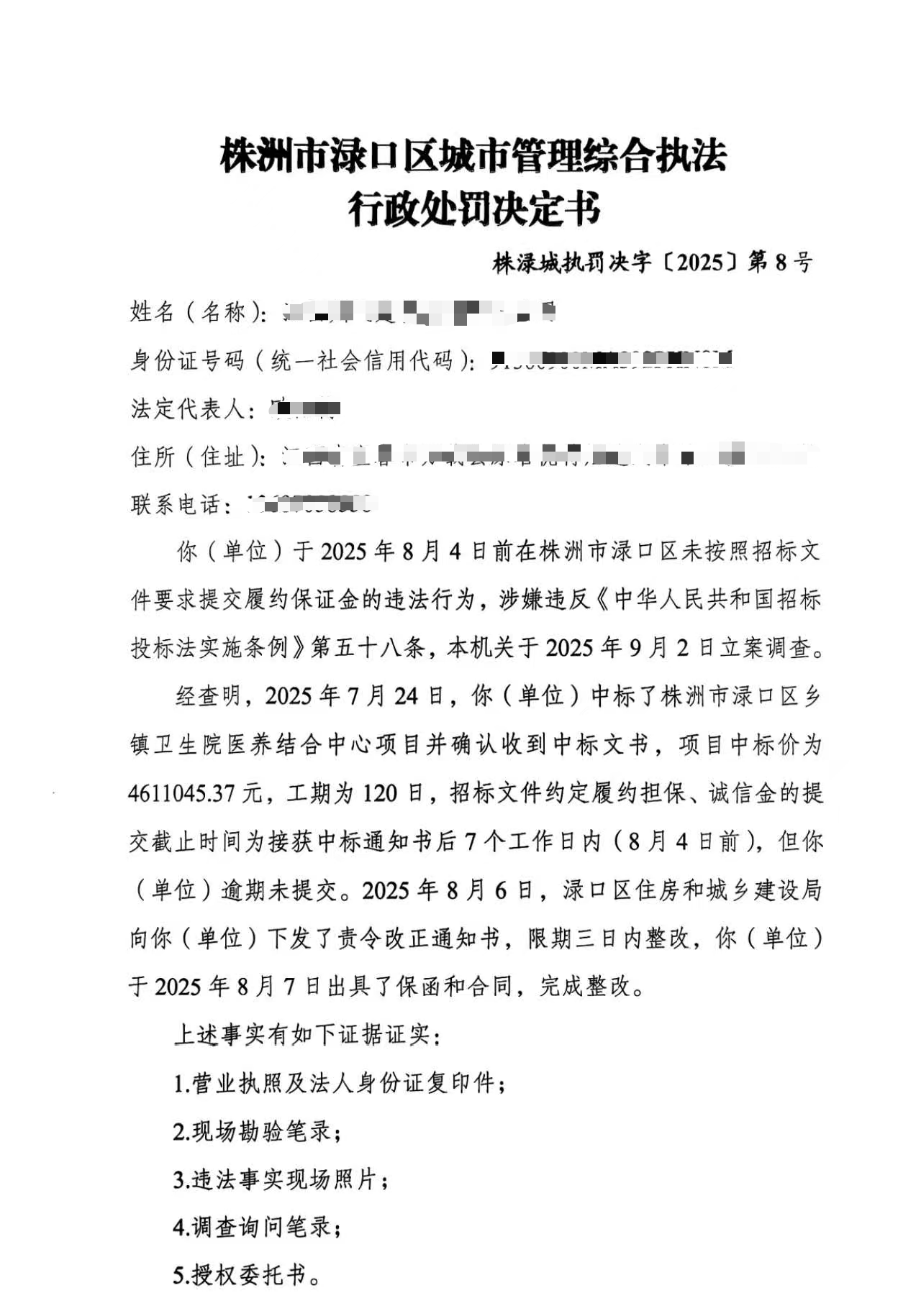 株洲市渌口区城市管理和综合执法局行政处罚决定书 株(渌)城执罚决字〔2025〕第8号