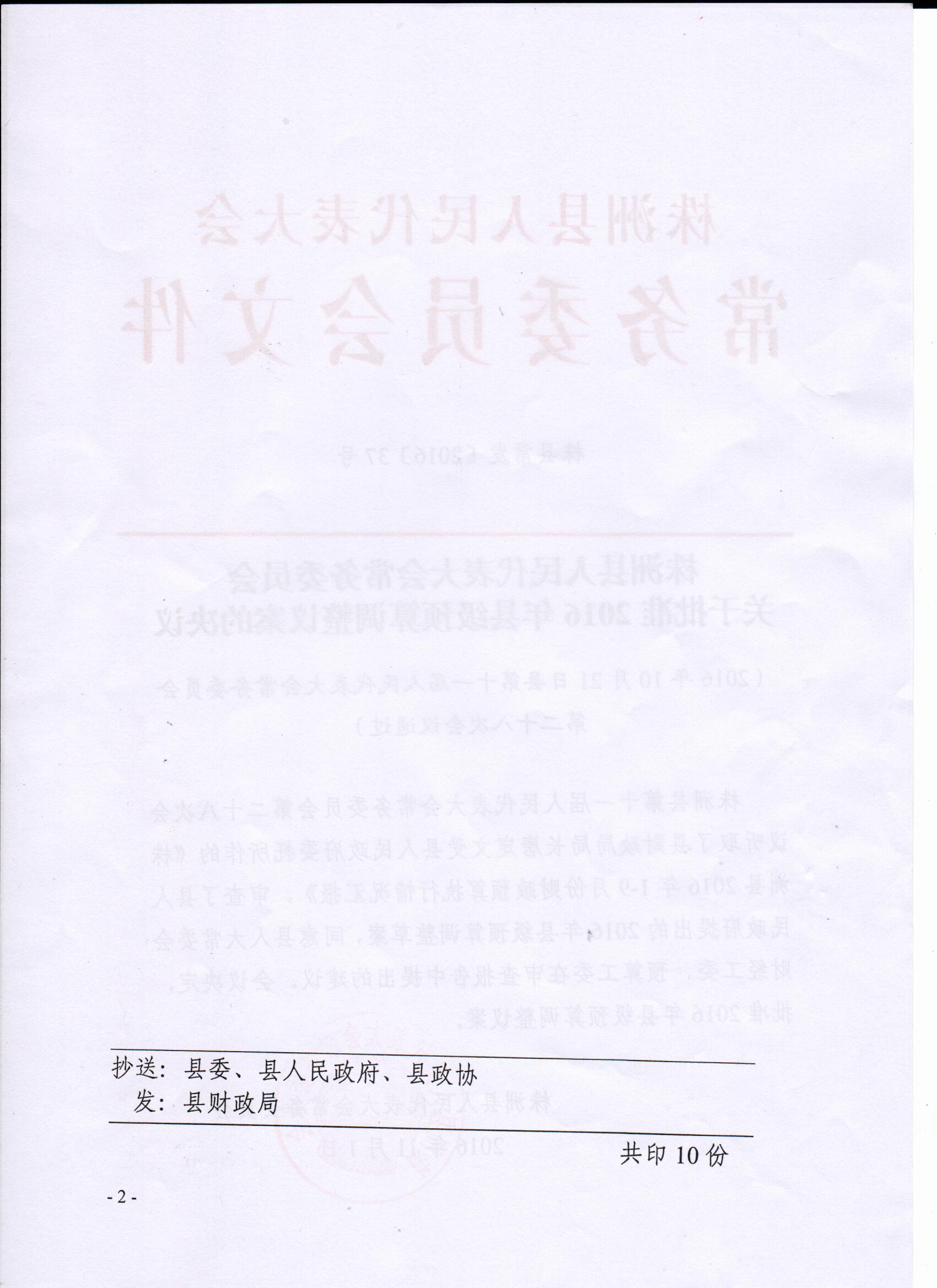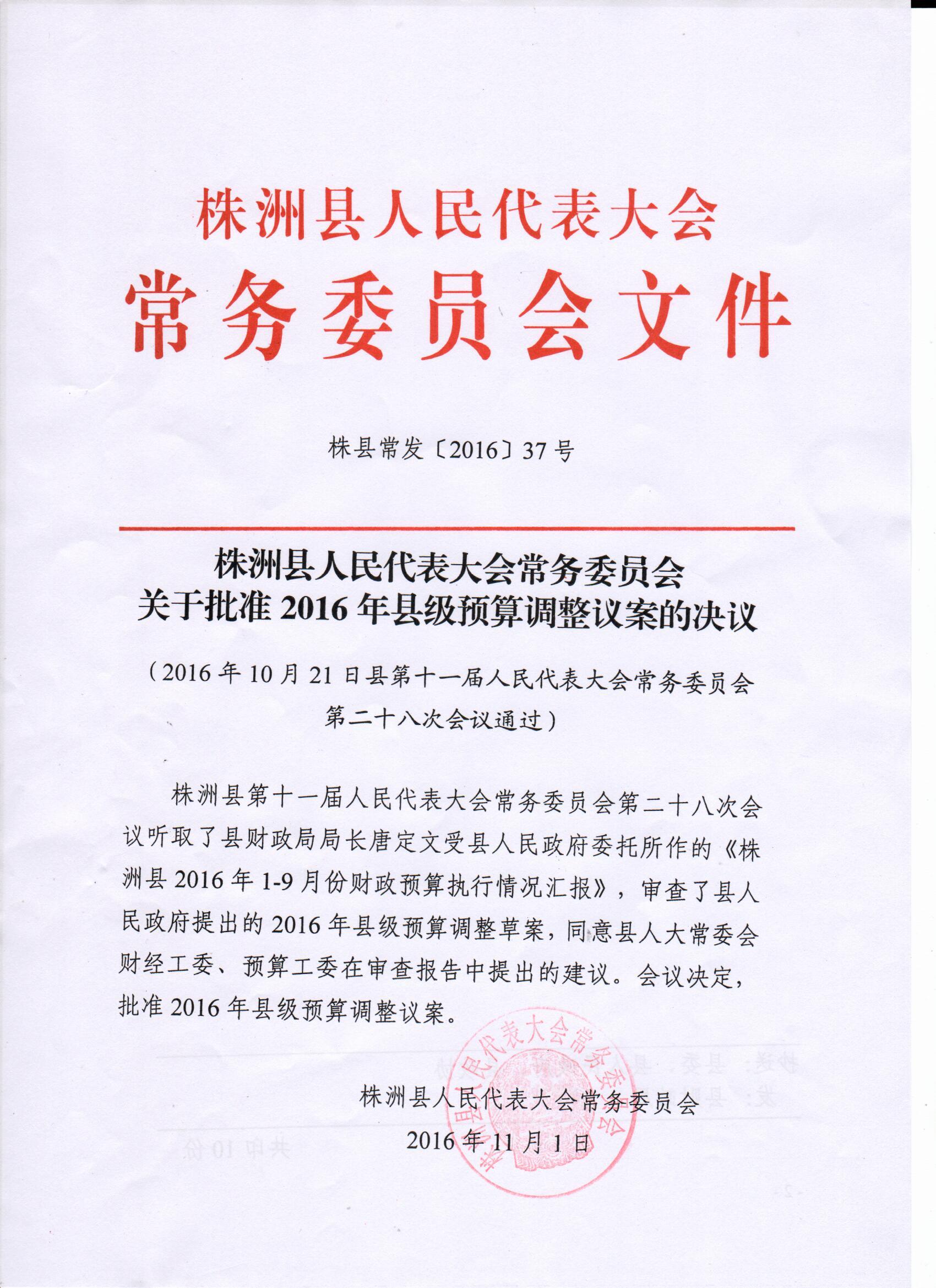 株洲县人民代表大会常务委员会关于批准2016年县级预算调整议案的决定
