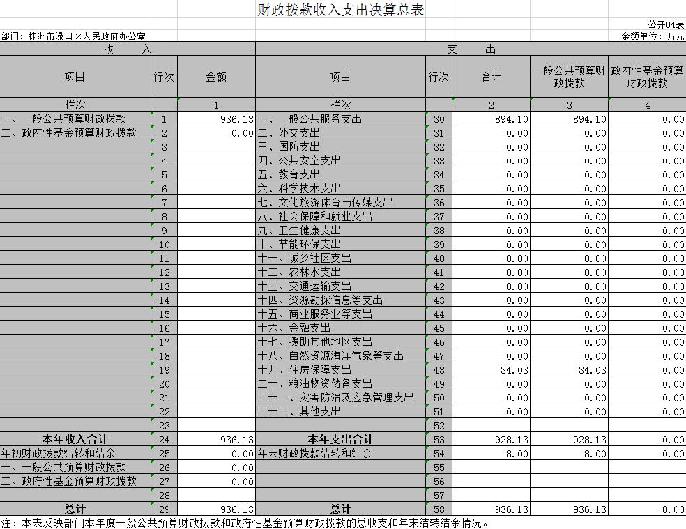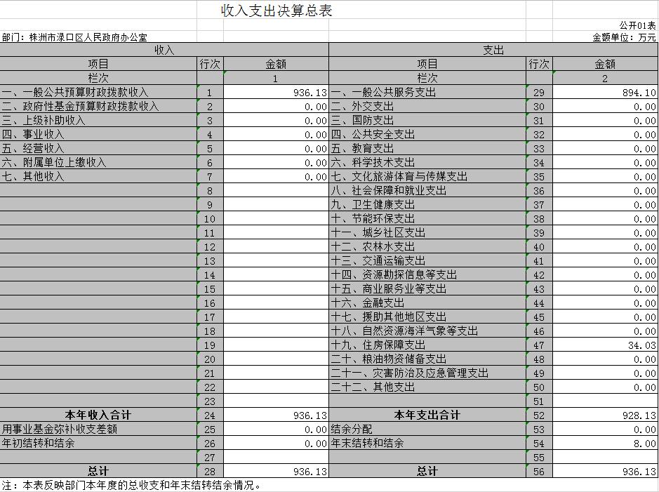2019 年度收、支总计936.13万元。与2018年相比,增加(减少)69.97万元,减少7%;主要是因为机构改革民宗职能划出、创建办、金融办、法制办等单位划转,相应人员及工作经费减少。