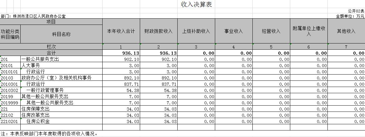 本年收入合计936.13万元,其中:财政拨款收入936.13万元,占100%;上级补助收入0万元,占0%;事业收入0万元,占0%;经营收入0万元,占0%;附属单位上缴收入0万元,占0%;其他收入0万元,占0%。