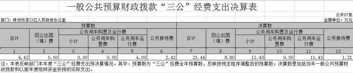 七、一般公共预算财政拨款“三公”经费支出决算表
