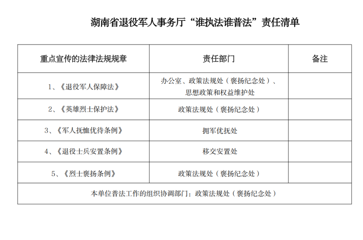 2025年湖南省退役军人事务厅“谁执法谁普法”责任清单